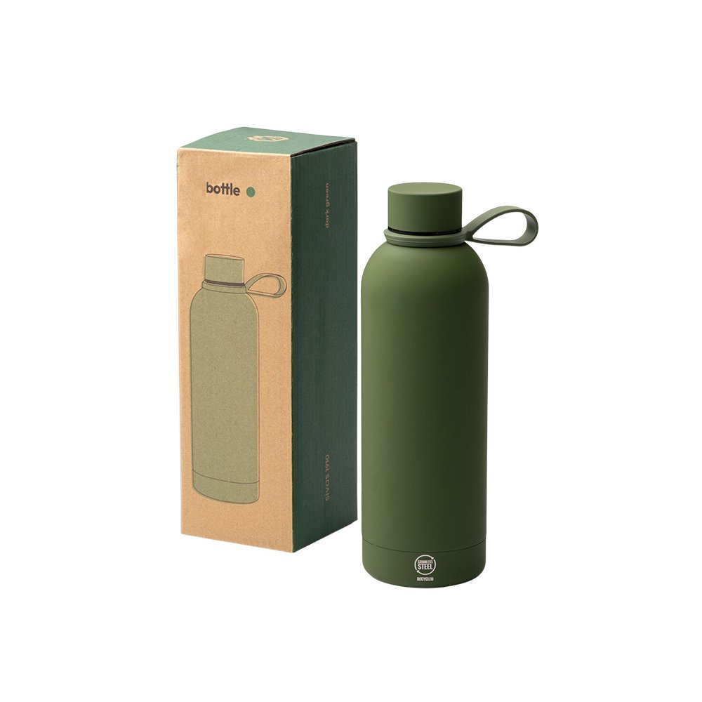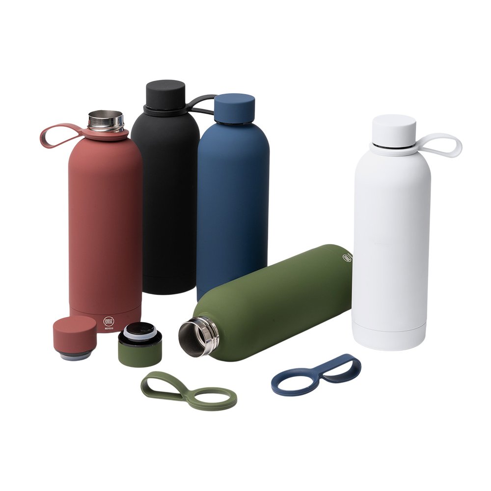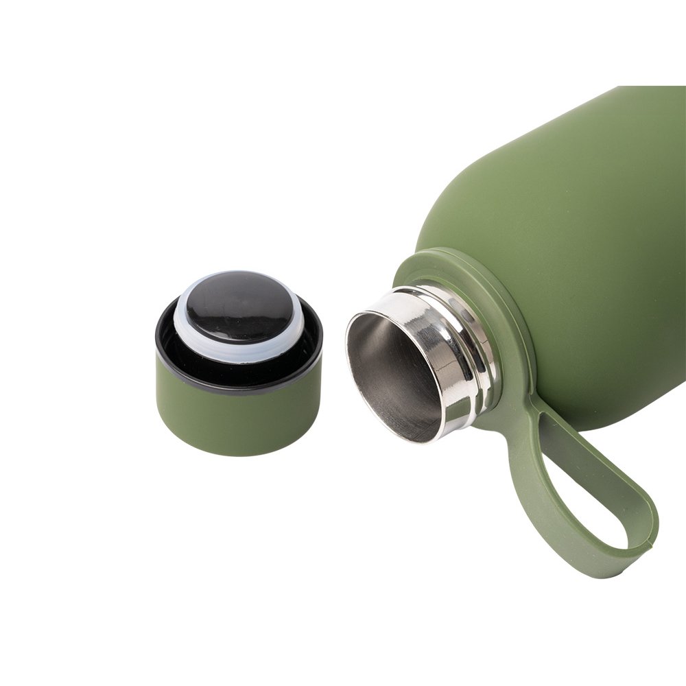 - Термобутылка из переработанной нержавеющей стали 304. Мягкая прорезиненная поверхность на корпусе. Удобная силиконовая ручка для переноски. Оснащена противокапельной системой благодаря силиконовому кольцу, встроенному во внутреннюю часть крышки. Крышка и ручка соответствуют цвету корпуса. Объем: 500 мл. - Переработанная нержавеющая сталь 304 - Защита от капель - Нельзя мыть в посудомоечной машине - Поставляется в эко коробке