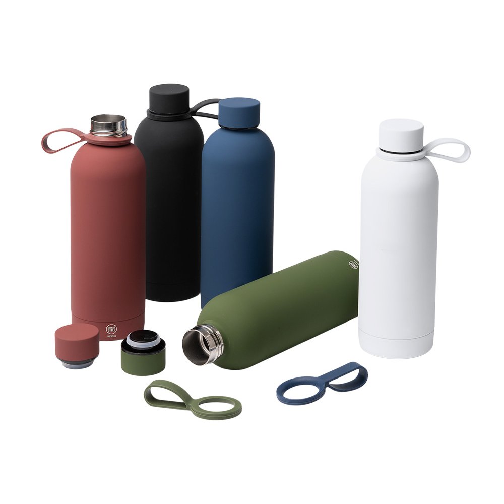 - Термобутылка из переработанной нержавеющей стали 304. Мягкая прорезиненная поверхность на корпусе. Удобная силиконовая ручка для переноски. Оснащена противокапельной системой благодаря силиконовому кольцу, встроенному во внутреннюю часть крышки. Крышка и ручка соответствуют цвету корпуса. Объем: 500 мл. - Переработанная нержавеющая сталь 304 - Защита от капель - Нельзя мыть в посудомоечной машине - Поставляется в эко коробке