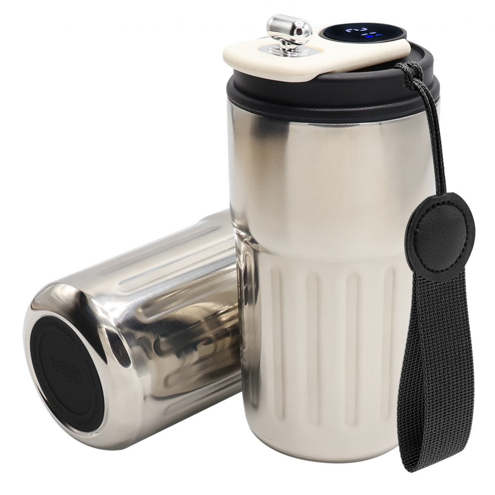 - Термокружка Ashly с дисплеем выполнена из пищевой нержавеющей стали. Объем 400 мл. Имеет двойные стенки с вакуумной изоляцией, крышка изготовлена из пищевого безопасного для человека пластика. Особенностью термокружки Ashly является наличие сенсорного индикатора температуры, расположенного в крышке. Чтобы узнать температуру напитка внутри кружки, достаточно прикоснуться к поверхности крышки. Помимо этого, термокружка Ashly очень удобна в использовании. Просто нажмите на клапан в направлении дисплея, чтобы открыть верхнюю часть крышки и насладиться любимым напитком. Элегантный дизайн, удобство и функциональность - вот что делает термокружку Ashly незаменимым аксессуаром для всех любителей горячих и холодных напитков. В комплекте: термокружка, шнурок, силиконовая накладка и фирменная коробка. Надежная крышка - качественные и безопасные материалы - двойные стенки из нержавеющей стали - сенсорный ЖК-дисплей - информация о температуре жидкости -отличные теплоизоляционные свойства - эргономичный дизайн - удобная форма! Термокружка подходит для большинства автомобильных подстаканников. Цвет шнурка, максимально близкий к пантону 2077С. Цвет накладки, максимально близкий к пантону 108C