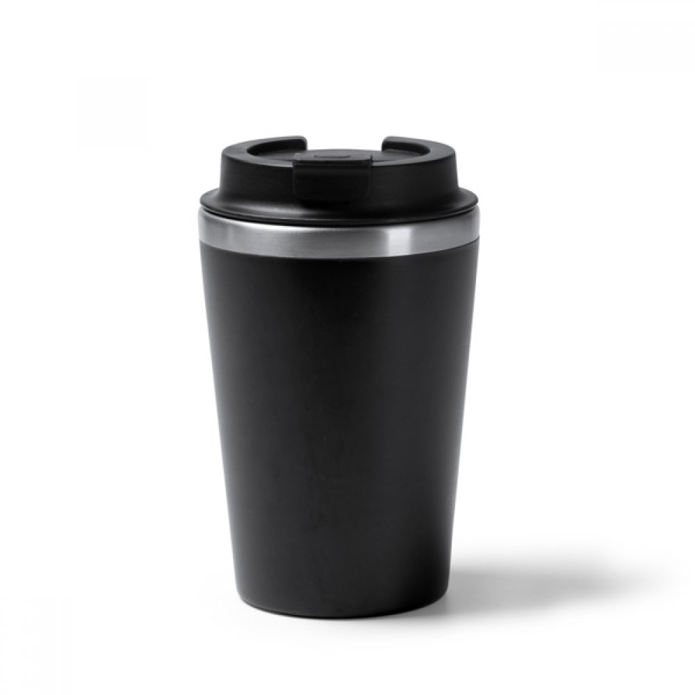 Чашка с двойными стенками. Внутренняя часть из нержавеющей стали 304, внешняя часть из переработанного полипропилена. Винтовая крышка, порт для питья закрывается на клапан. Объем: 350 мл. Презентация в дизайнерской коробке.