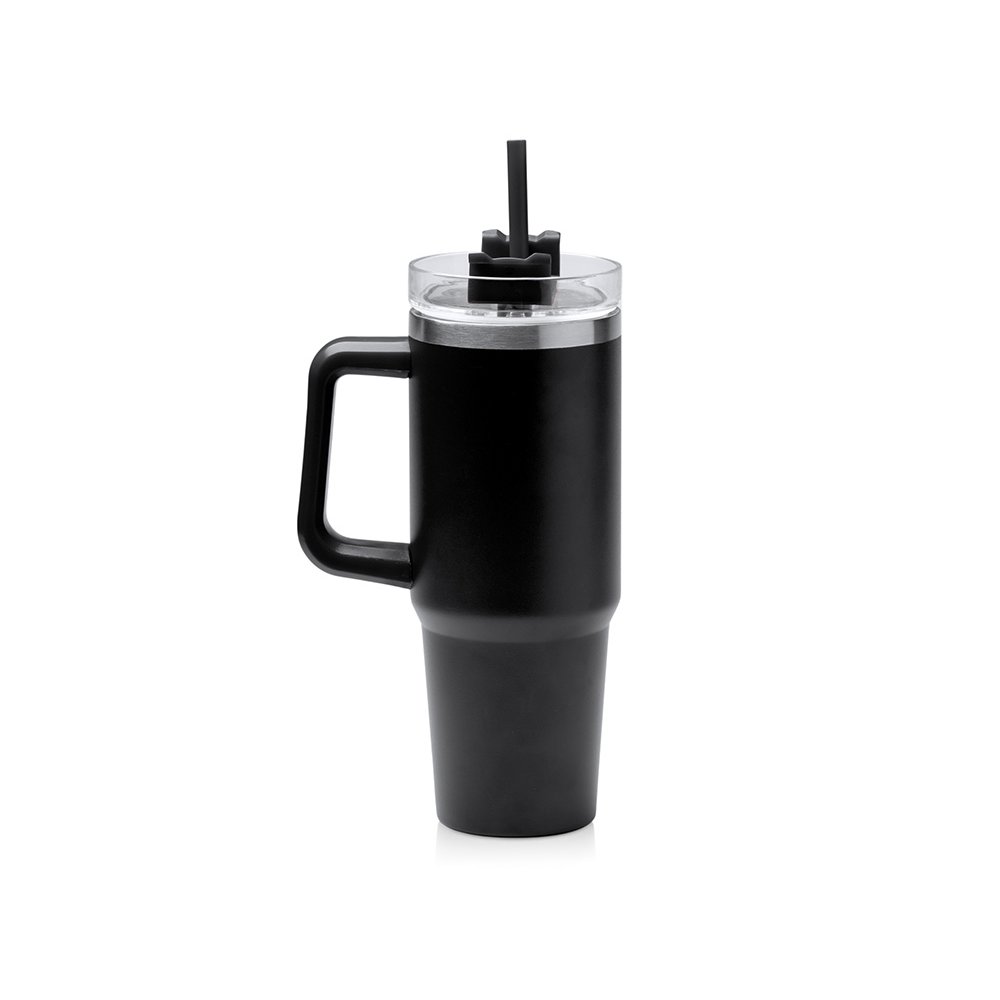 Двухстеночная термокружка из переработанной нержавеющей стали 304. Крышка с трубочкой и винтовой системой закрытия. Объём: 850 мл. Поставляется в дизайнерской коробке.