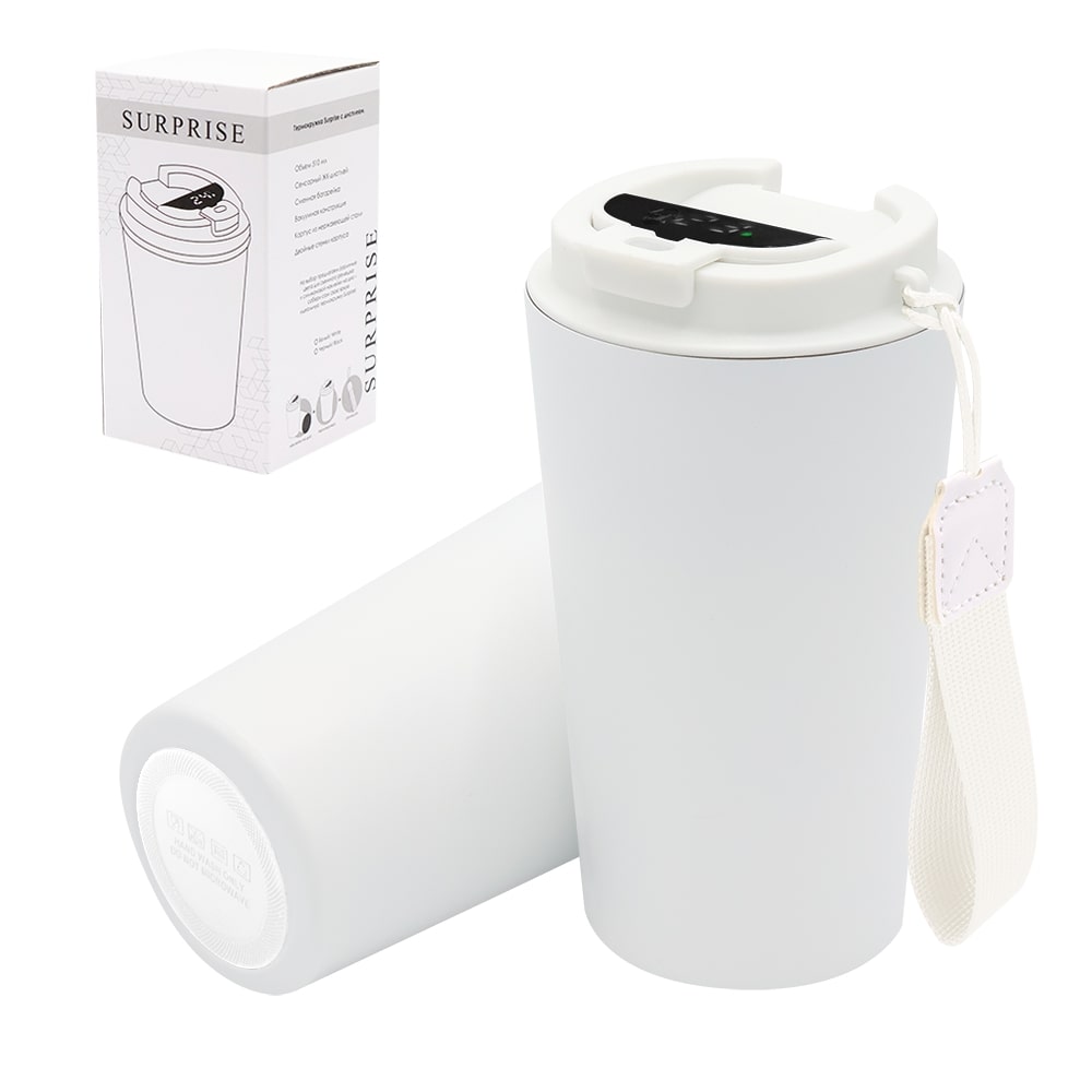 - Термокружка Surprise To Go с дисплеем выполнена из пищевой нержавеющей стали. Имеет двойные стенки с вакуумной изоляцией, а крышка изготовлена из пищевого безопасного для человека пластика. Термокружка Surprise To Go не только сохраняет ваши напитки горячими, но и показывает температуру напитка! Уникальная особенность данной термокружки – наличие сенсорного индикатора температуры, расположенного в крышке. Чтобы узнать температуру напитка внутри кружки, достаточно прикоснуться к поверхности крышки. Работает от 1 батарейки типа CR2032 (в комплекте), которую в последующем можно самостоятельно заменить. - качественные и безопасные материалы - двойные стенки из нержавеющей стали - сенсорный ЖК-дисплей - информация о температуре жидкости - батарею можно заменить самостоятельно -отличные теплоизоляционные свойства - эргономичный дизайн - удобная форма В комплект уже входит силиконовая накладка и шнурок. Насладись своим кофе в компании термокружки Surprise To Go!
