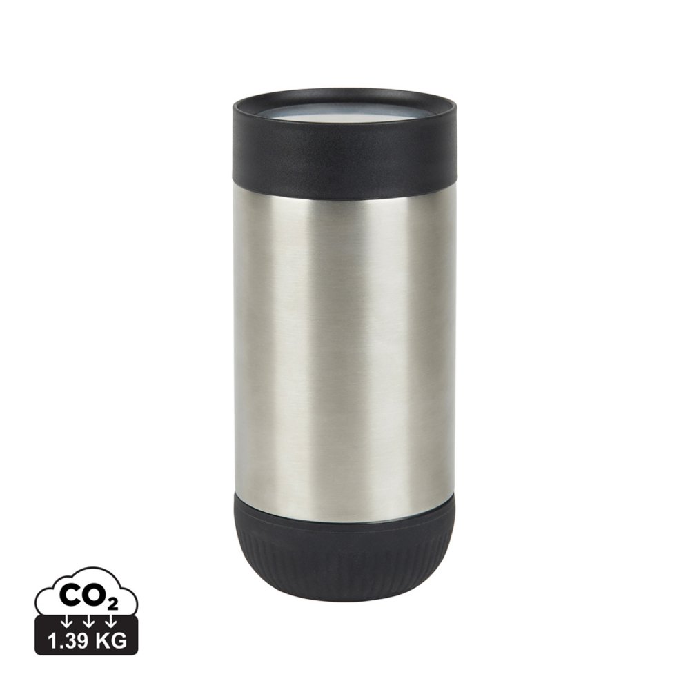 - Минималистичная термокружка из коллекции Erie — отличный повод отказаться от одноразовых стаканчиков для кофе. Изготовленная из переработанной нержавеющей стали, эта экологичная кружка будет радовать горячими напитками долгое время. Объема 350 миллилитров хватит, чтобы насладиться любимым кофе или чаем по дороге на работу, в офисе или поездке. Термокружка отличается инновационной конструкцией: нажимной механизм открывает герметичную крышку, чтобы можно было пить. Повторное нажатие закроет крышку