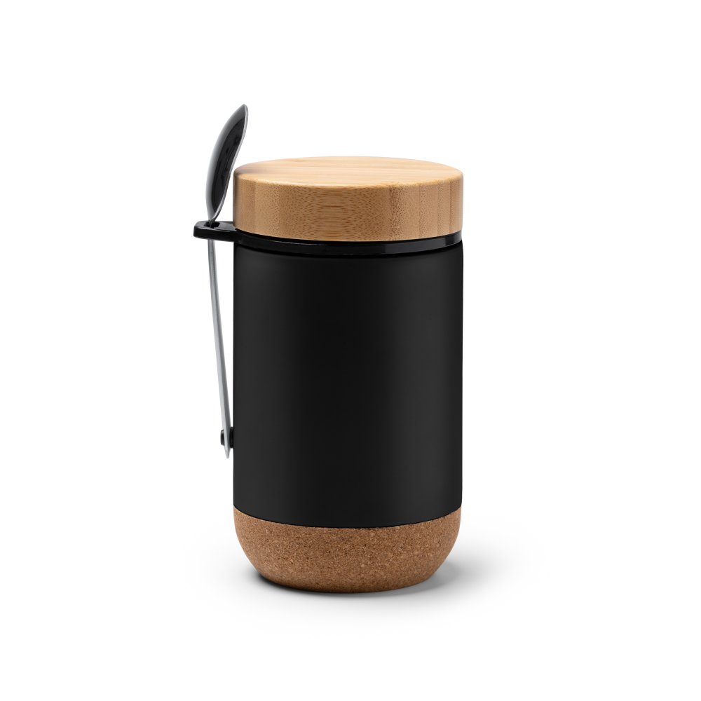 Термос из нержавеющей стали. Двойная стенка с медной изоляцией. Емкость 400 мл. Бамбуковая крышечка и пробковое днище.