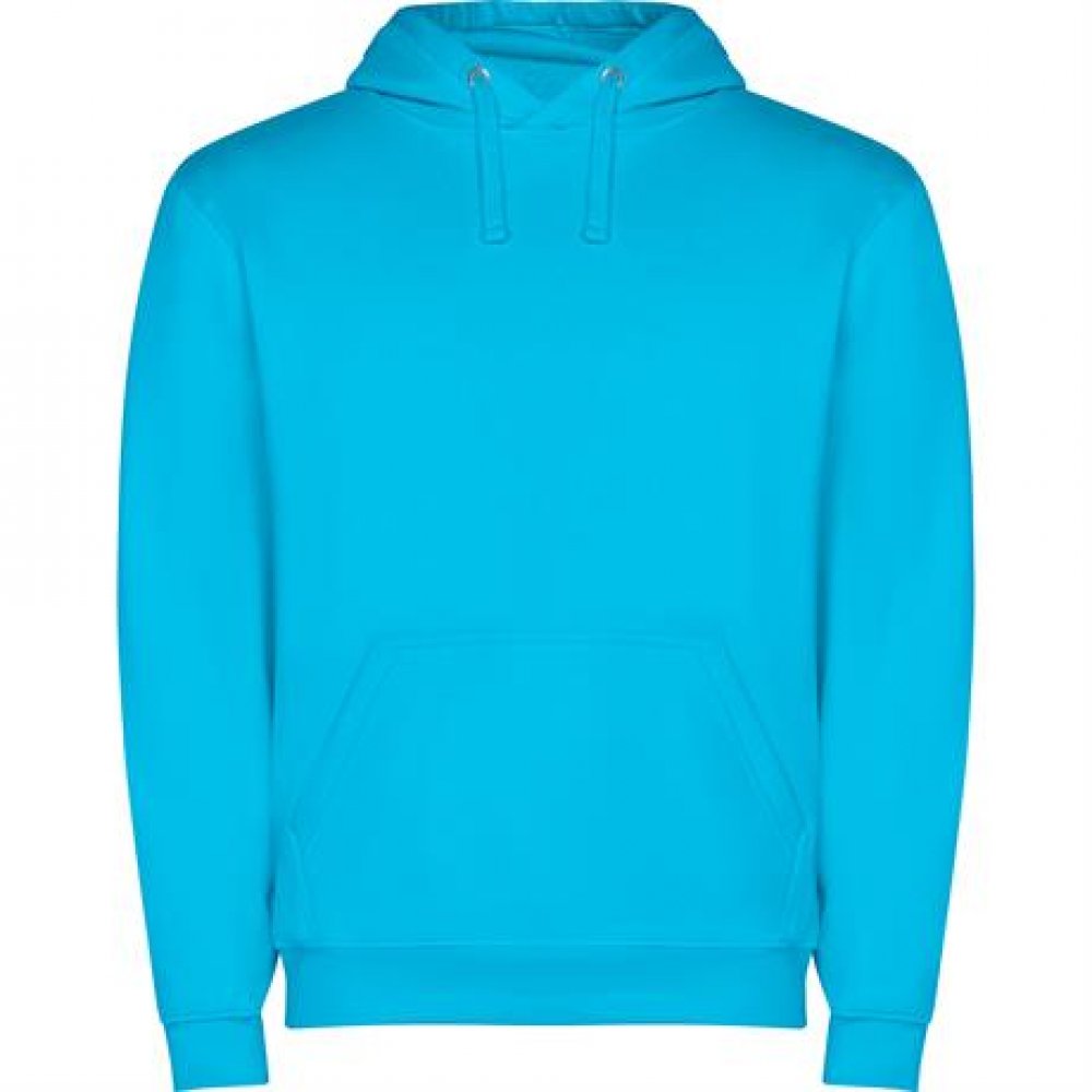 Толстовка с карманом-кенгуру и капюшоном с плоским шнурком для регулировки. Манжеты и низ из ткани в рубчик 1 x 1 с эластаном. Модель для детей — с капюшоном без шнурка. *Съемная этикетка.