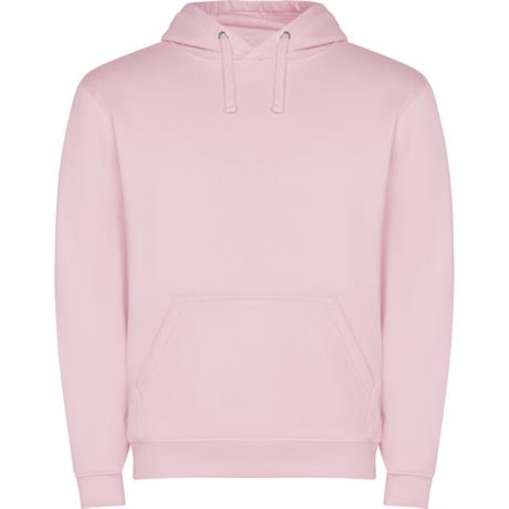 Толстовка с карманом-кенгуру и капюшоном с плоским шнурком для регулировки. Манжеты и низ из ткани в рубчик 1 x 1 с эластаном. Модель для детей — с капюшоном без шнурка. *Съемная этикетка.