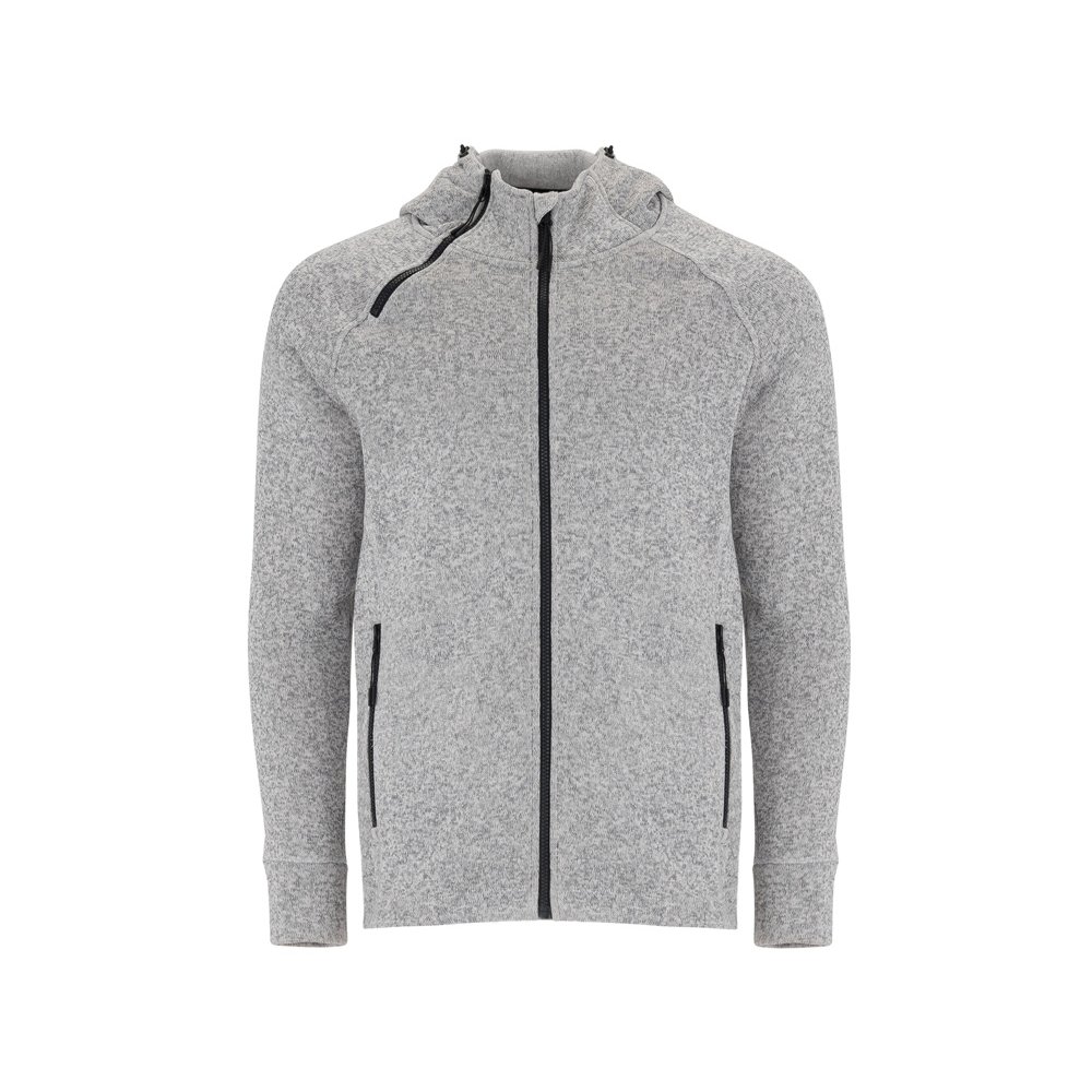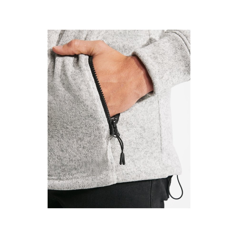 - Толстовка на молнии с капюшоном. - Дизайнерские пластиковые молнии с бегунком. - Молния по центру с защитой для подбородка. - Высокий воротник с регуляторами и закрытыми внутренними швами. - Дополнительная декоративная молния на воротнике для облегчения одевания и снятия. - Два кармана спереди на молнии. - Спинка немного длиннее переда.
