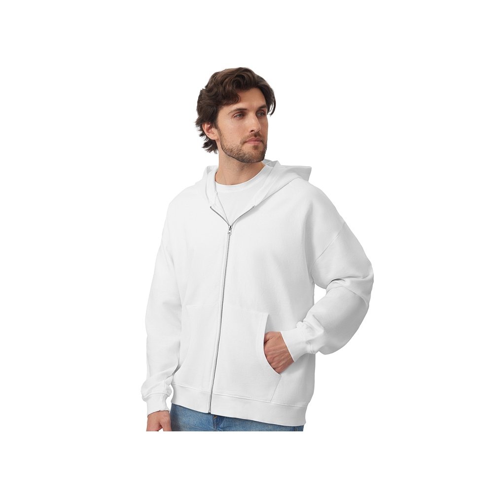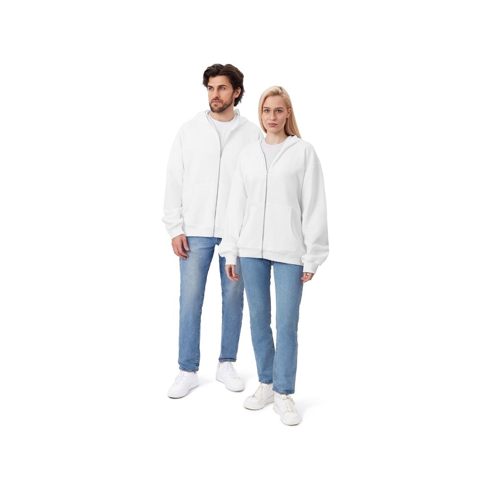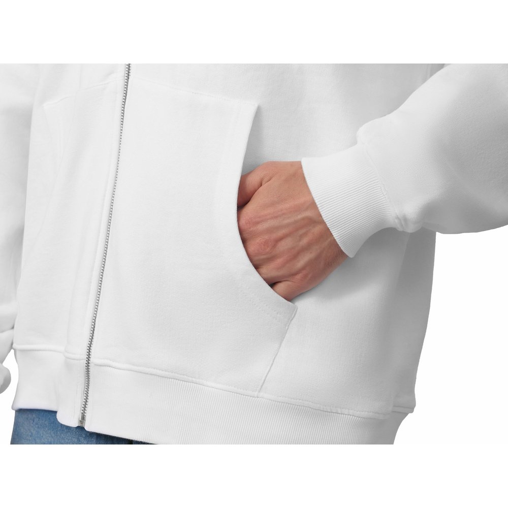 - Толстовка на молнии с капюшоном. Риб 2х2 по манжетам и низу изделия. - удобный капюшон на подкладке из основного материала - посадка оверсайз - вместительный карман кенгуру - внутри на спинке кокетка - дополнительное место для нанесения лого клиента