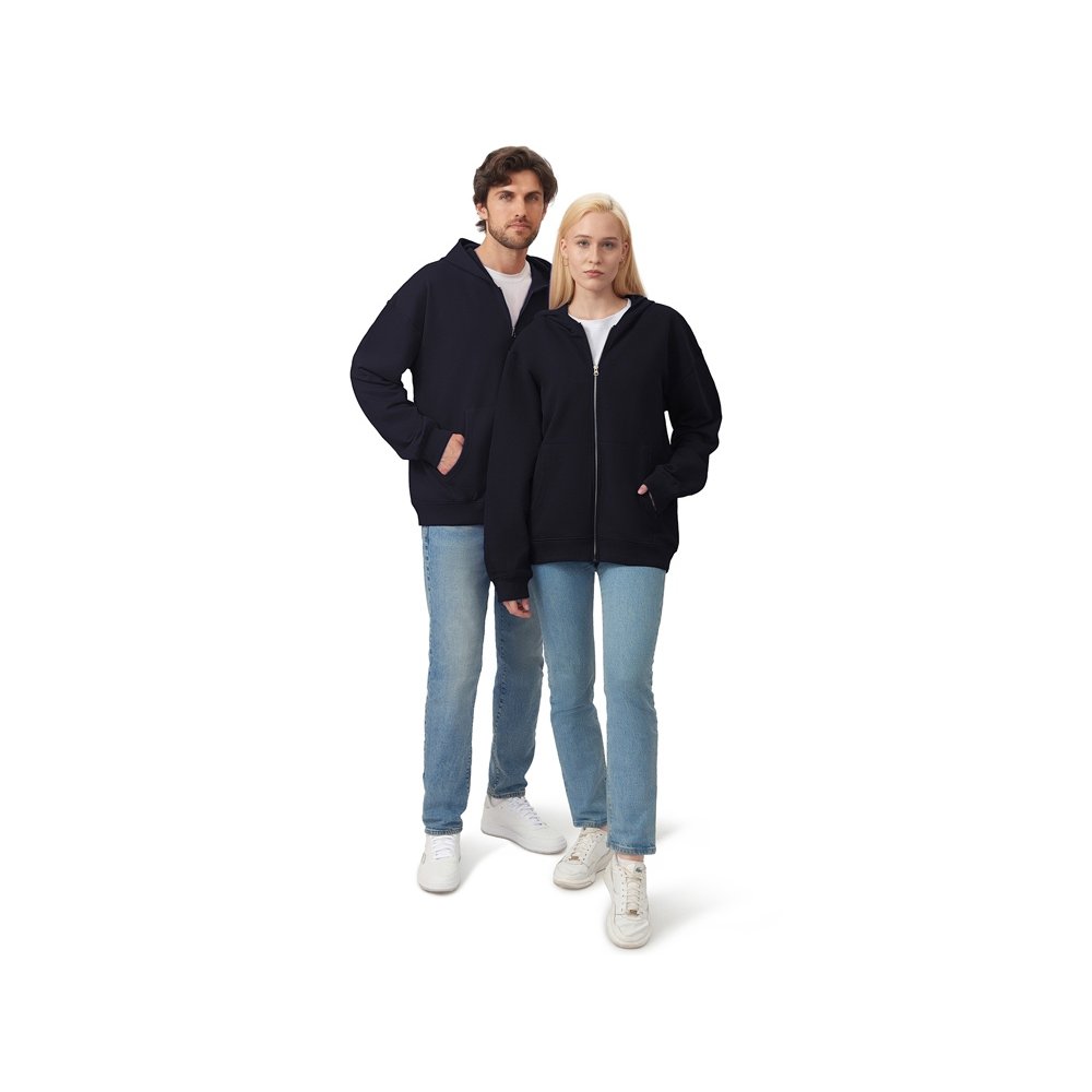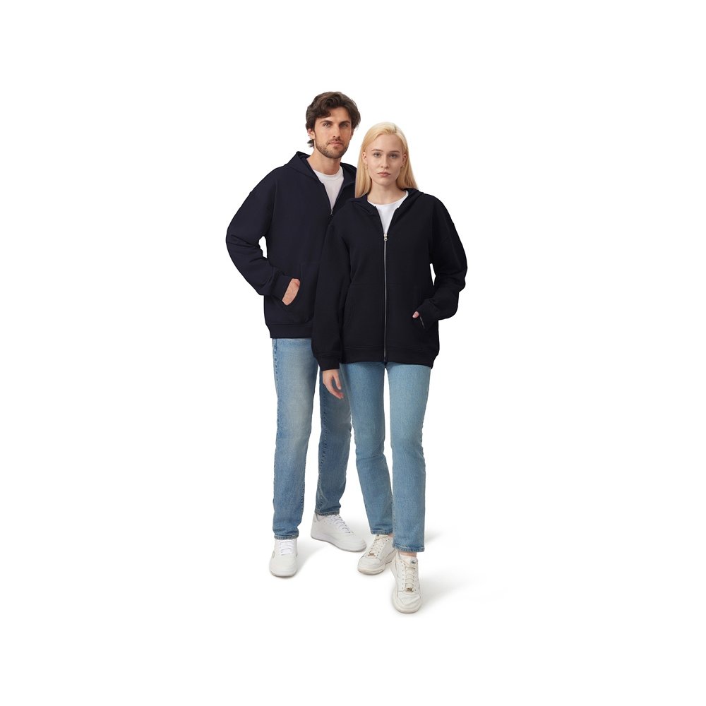 - Толстовка на молнии с капюшоном. Риб 2х2 по манжетам и низу изделия. - удобный капюшон на подкладке из основного материала - посадка оверсайз - вместительный карман кенгуру - внутри на спинке кокетка - дополнительное место для нанесения лого клиента