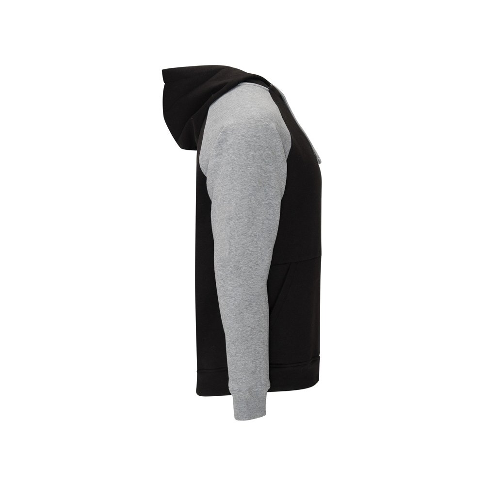 - Худи с контрастным рукавом реглан. Капюшон с запахом, с контрастной подкладкой и шнурком. На полочке карман кенгуру. Манжеты рукавов и низ изделия из риба 1х1. В ассортименте представлена аналогичная детская модель "Badet"