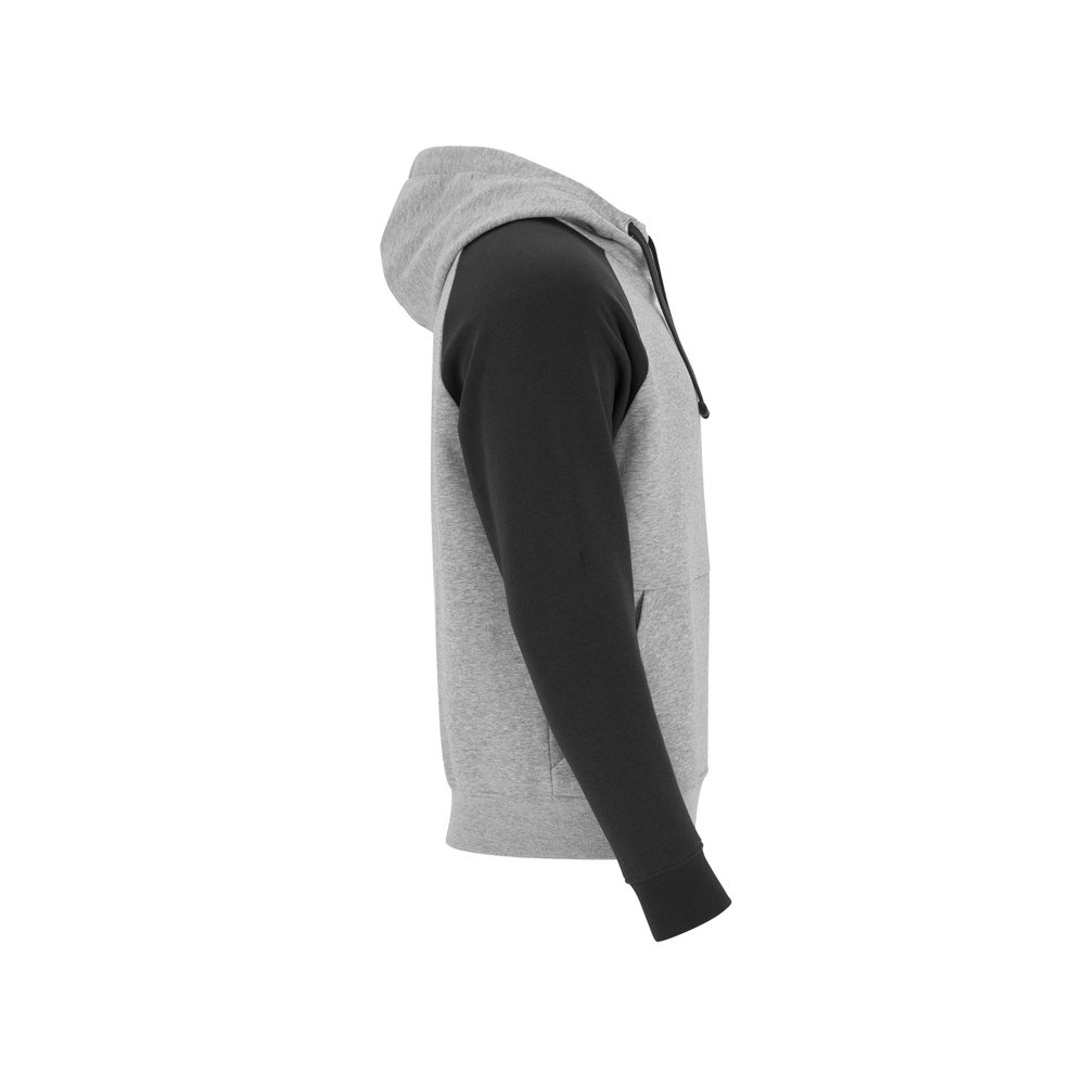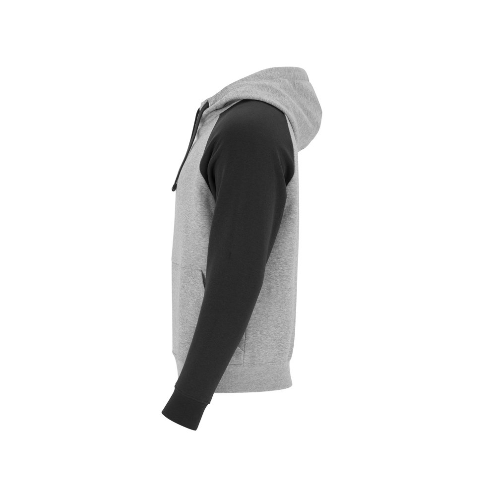 - Худи с контрастным рукавом реглан. Капюшон с запахом, с контрастной подкладкой и шнурком. На полочке карман кенгуру. Манжеты рукавов и низ изделия из риба 1х1. В ассортименте представлена аналогичная детская модель "Badet"