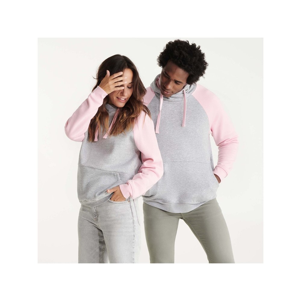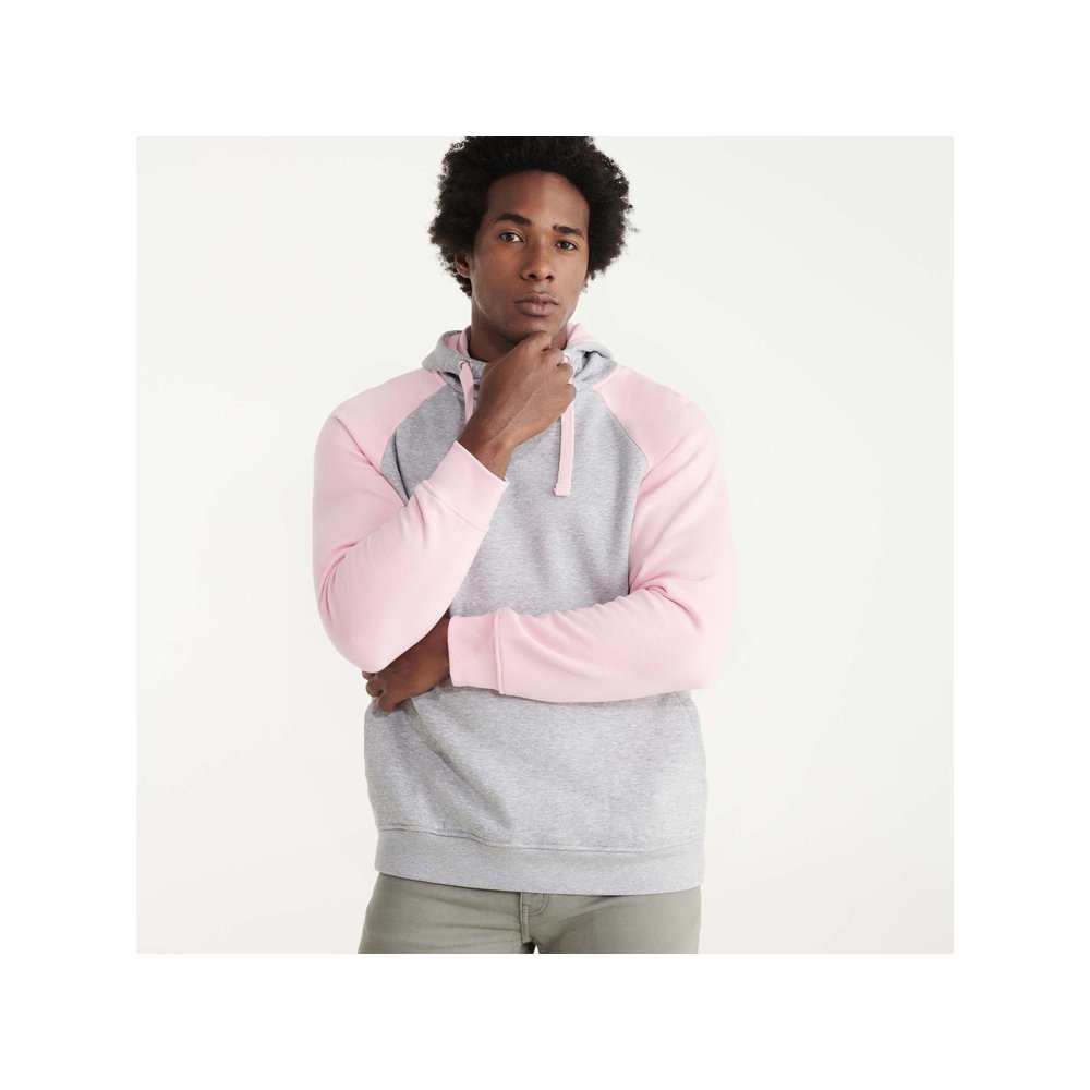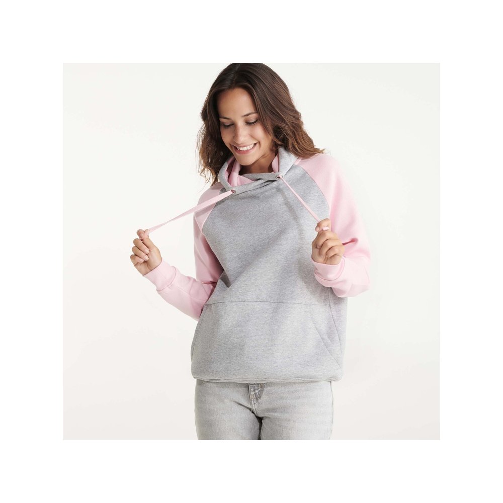- Худи с контрастным рукавом реглан. Капюшон с запахом, с контрастной подкладкой и шнурком. На полочке карман кенгуру. Манжеты рукавов и низ изделия из риба 1х1. В ассортименте представлена аналогичная детская модель "Badet"