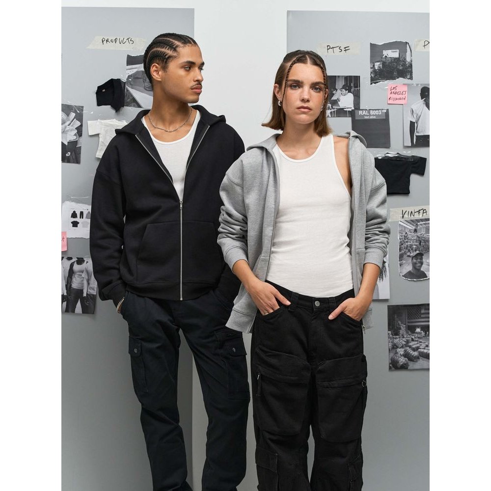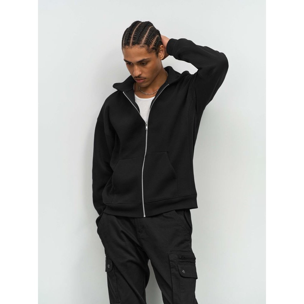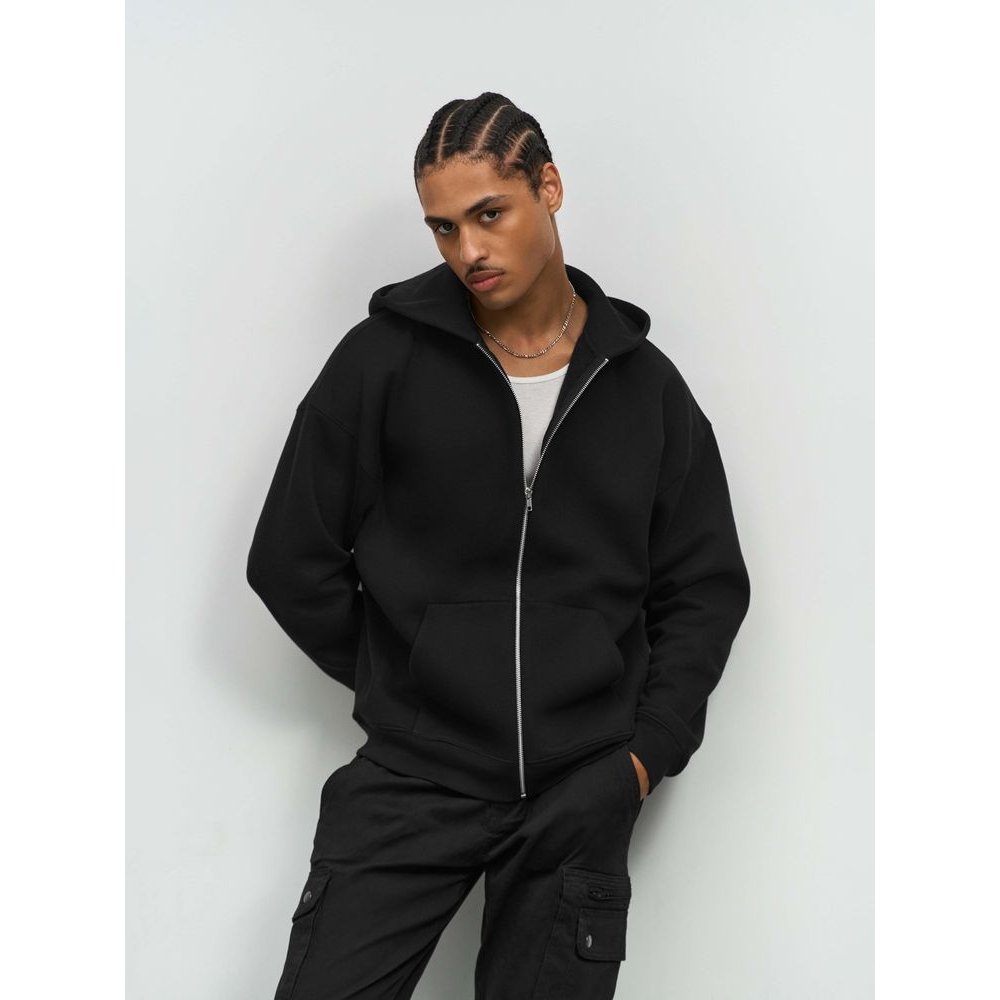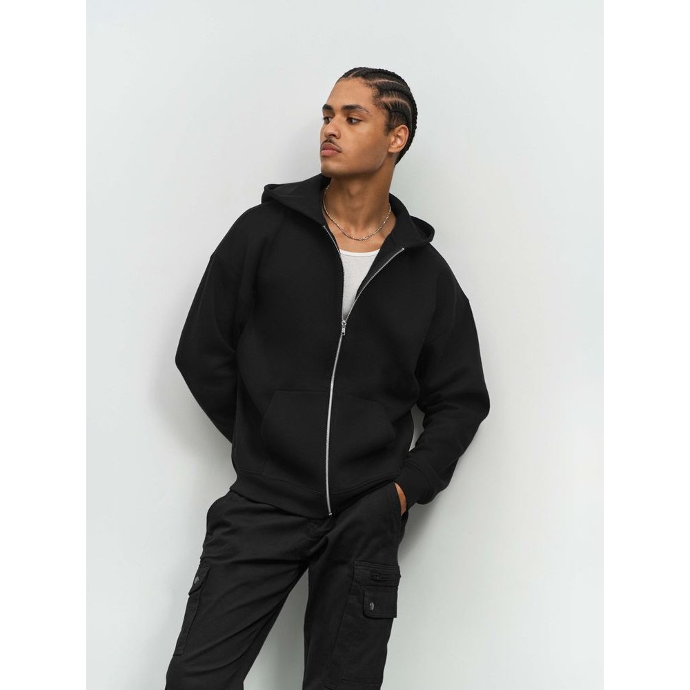 - Толстовка на молнии свободной посадки. Благодаря высокой плотности изделие хорошо держит форму, а изнанка с начесом обеспечивает тепло и комфорт.