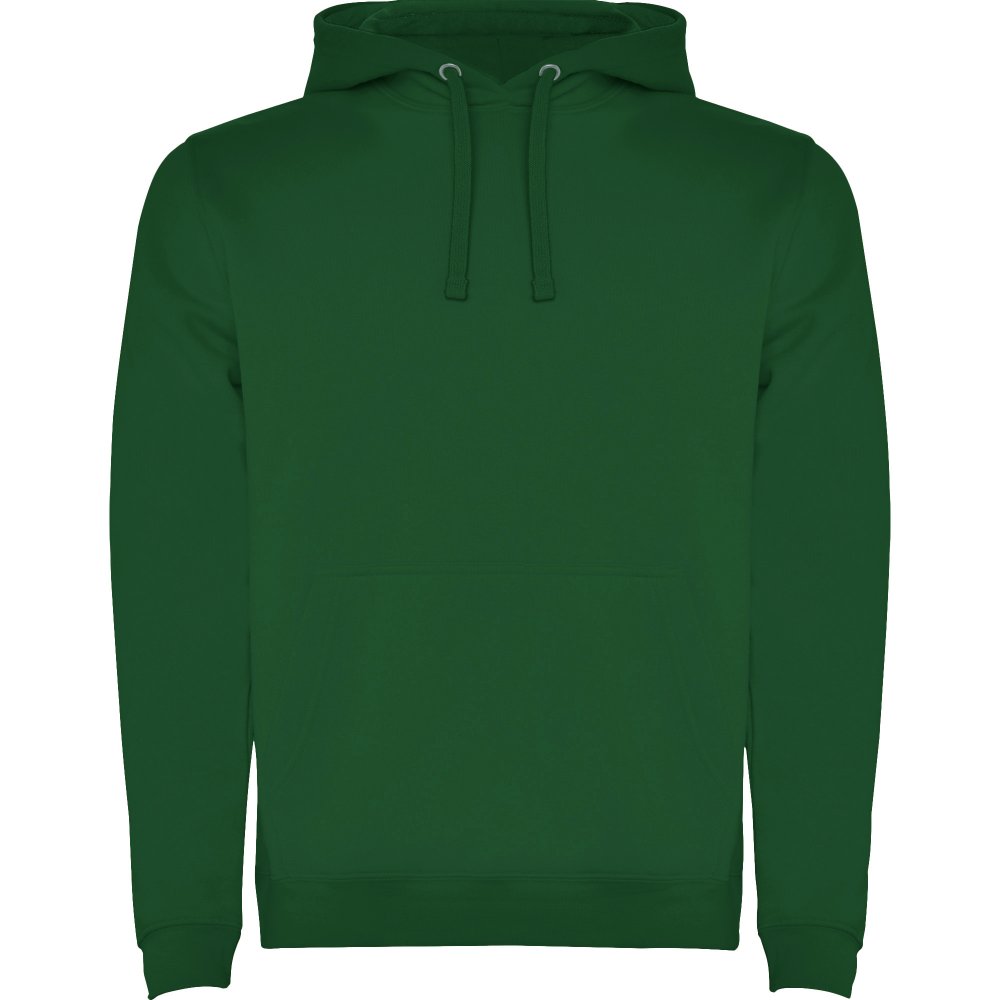 Однотонная или двухцветная толстовка с двухслойным капюшоном, регулируемым шнурком и карманом-кенгуру. Манжеты и нижний край выполнены из эластичной резинки 1x1.