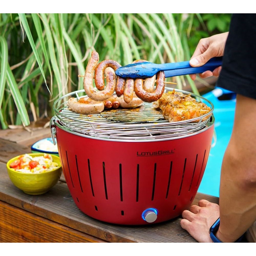 - Угольный гриль округлой формы. Благодаря особой конструкции нижняя часть гриля не нагревается, его можно размещать даже на чувствительных поверхностях.