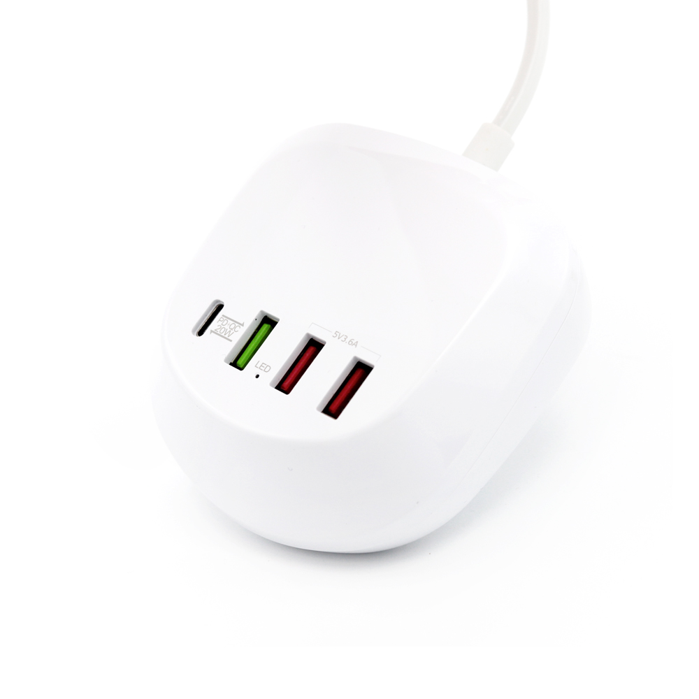- Универсальная платформа для зарядки гаджетов, с возможностью одновременного подключения 4 устройств. Порт Type-C подойдет для ноутбуков и нетбуков, порты USB позволяют при помощи кабеля с нужным типом порта осуществить зарядку мобильных телефонов, планшетов, наушников, часов. Наличие порта с функцией QC позволяет заряжать устройство в ускоренном режиме. Платформа выполнена из негорючего пластика, имеет встроенные компоненты предохраняющие устройства от перепадов напряжения