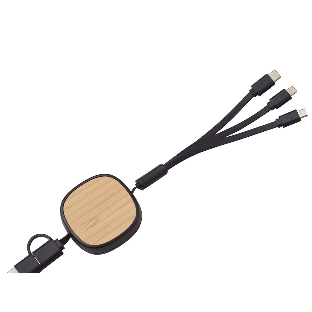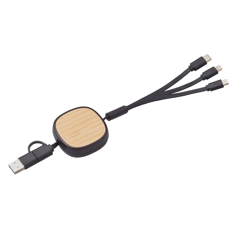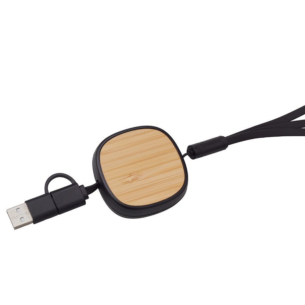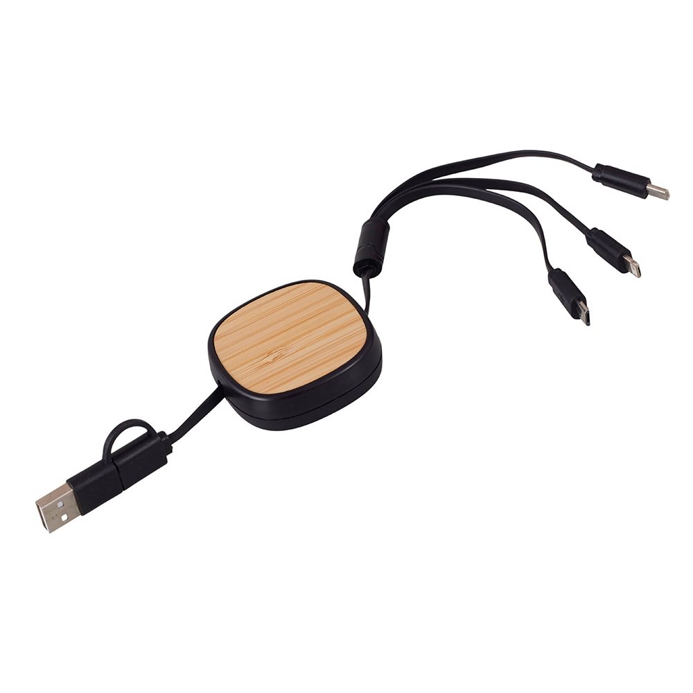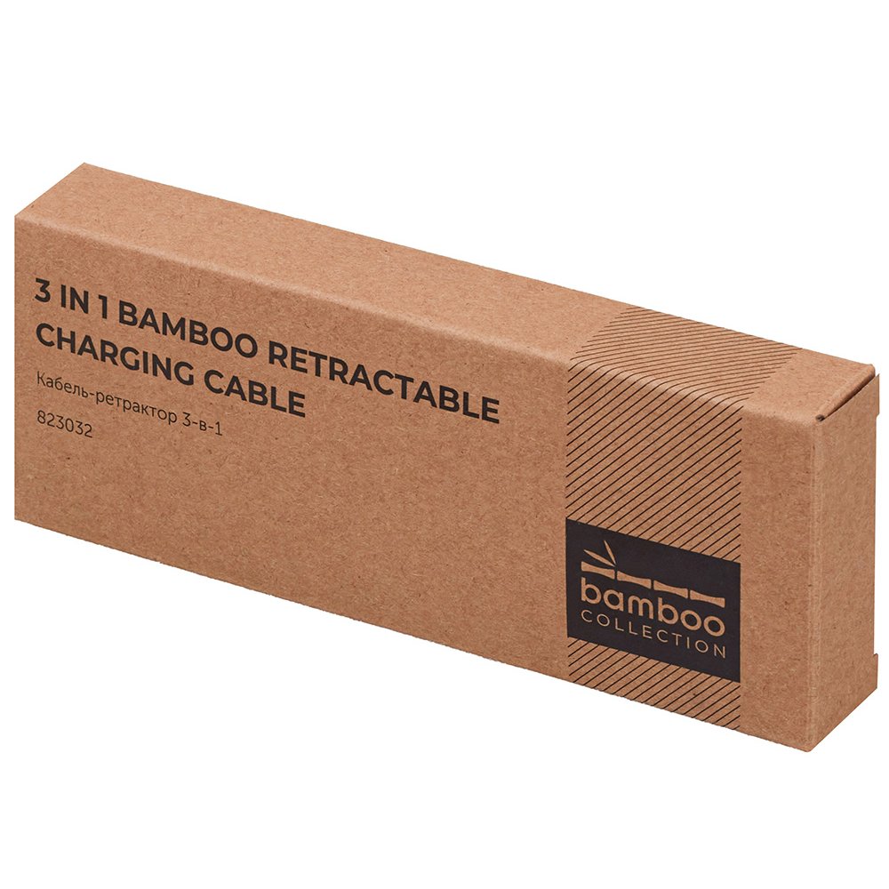 - Универсальный кабель с ретрактором 3-в-1 «Retrax» — это стильное и практичное решение для зарядки и передачи данных на ходу. Компактный корпус из экологичного бамбукового покрытия сочетается с удобной системой автоматического складывания, что делает его идеальным спутником в путешествиях, на работе и в повседневной жизни. Кабель оснащён тремя разъёмами: USB-A, Micro-USB и Lightning, обеспечивая совместимость с широким спектром устройств — от смартфонов до планшетов и других гаджетов. Благодаря прочной конструкции и элегантному дизайну, «Retrax» станет незаменимым аксессуаром для тех, кто ценит функциональность и стиль. Поставляется в фирменной коробке bamboo collection. • 3 в 1: один кабель — три разъёма (USB-A, Micro-USB, Lightning) для универсальной зарядки. • Входной разъем 2 в 1 – USB-C и USB-A • Автоматический ретрактор: кабель легко вытягивается и возвращается в корпус — всегда под рукой, но не мешает. • Компактный и стильный: эргономичный корпус с натуральным бамбуковым покрытием — сочетание технологий и природы. • Удобно для путешествий: миниатюрный размер позволяет легко помещать кабель в карман, сумку или рюкзак.