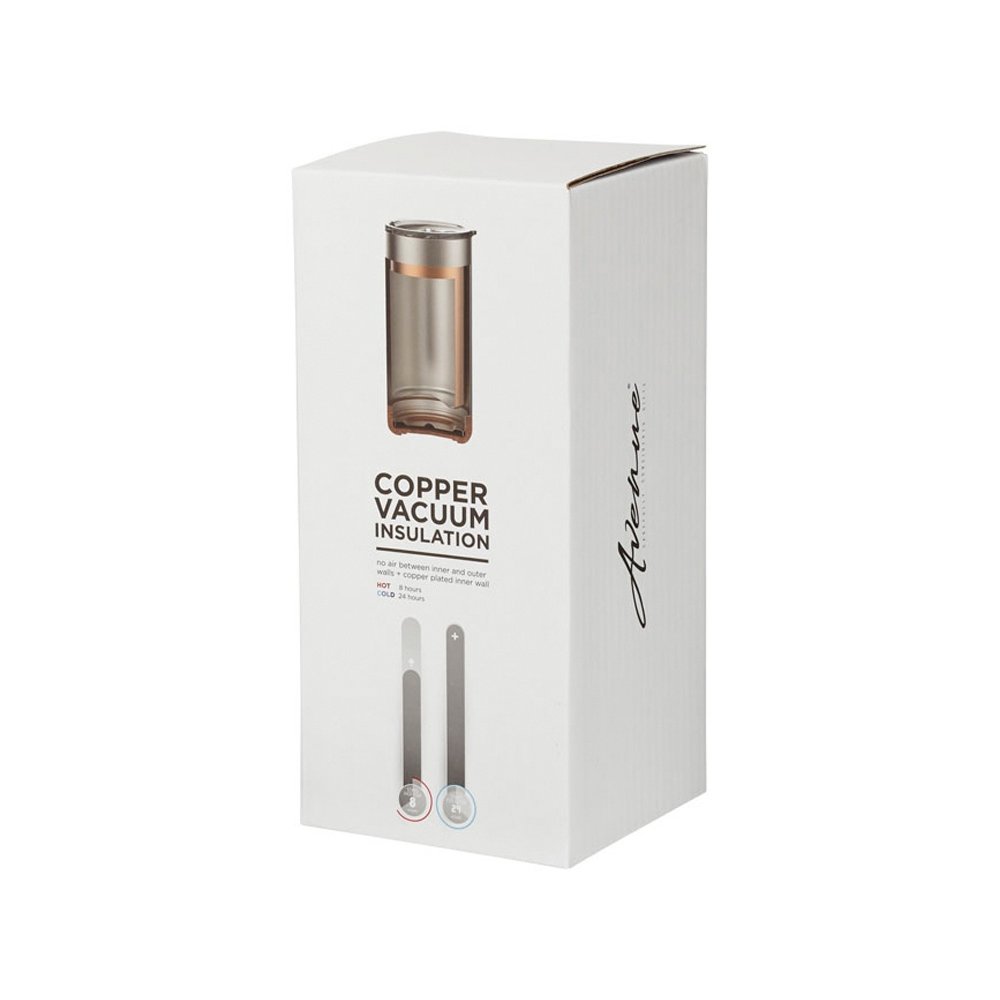 - Вакуумная термокружка Valhalla с медным покрытием. Стильная термокружка с анти-скользящим пробковым основанием. Выполнена из нержавеющей стали с двойными стенками и вакуумной, медной изоляцией. Термокружка сможет сохранять температуру холодных напитков до 24 часов, а горячих - до 8 часов. Конструкция также предотвращает образование конденсата снаружи. Объем 500 мл. Нержавеющая сталь.