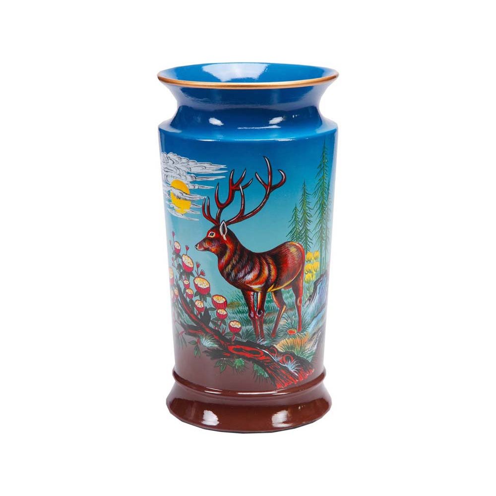 - Необычная керамическая ваза с изображением оленя прекрасно подойдет в роли подарка не только женщинам, но и мужчинам, любящим охоту. Ваза покрыта яркими красками. В комплекте прилагается подарочный футляр.