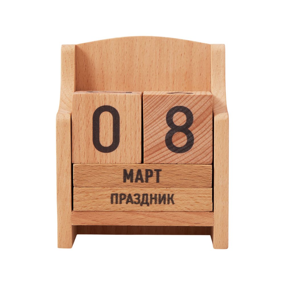 - Стильный и функциональный календарь из натурального бука станет элегантным украшением рабочего стола или интерьера. Помимо стандартных дат календарь включает 12 «поводов» — дни недели и настроения, которые можно отмечать каждый день, создавая настроение и отмечая особые моменты. Идеален для корпоративных подарков, сувениров и личного использования. Такой календарь сочетает практичность, экологичность и внимание к деталям, превращая каждый день в маленький ритуал и источник вдохновения.