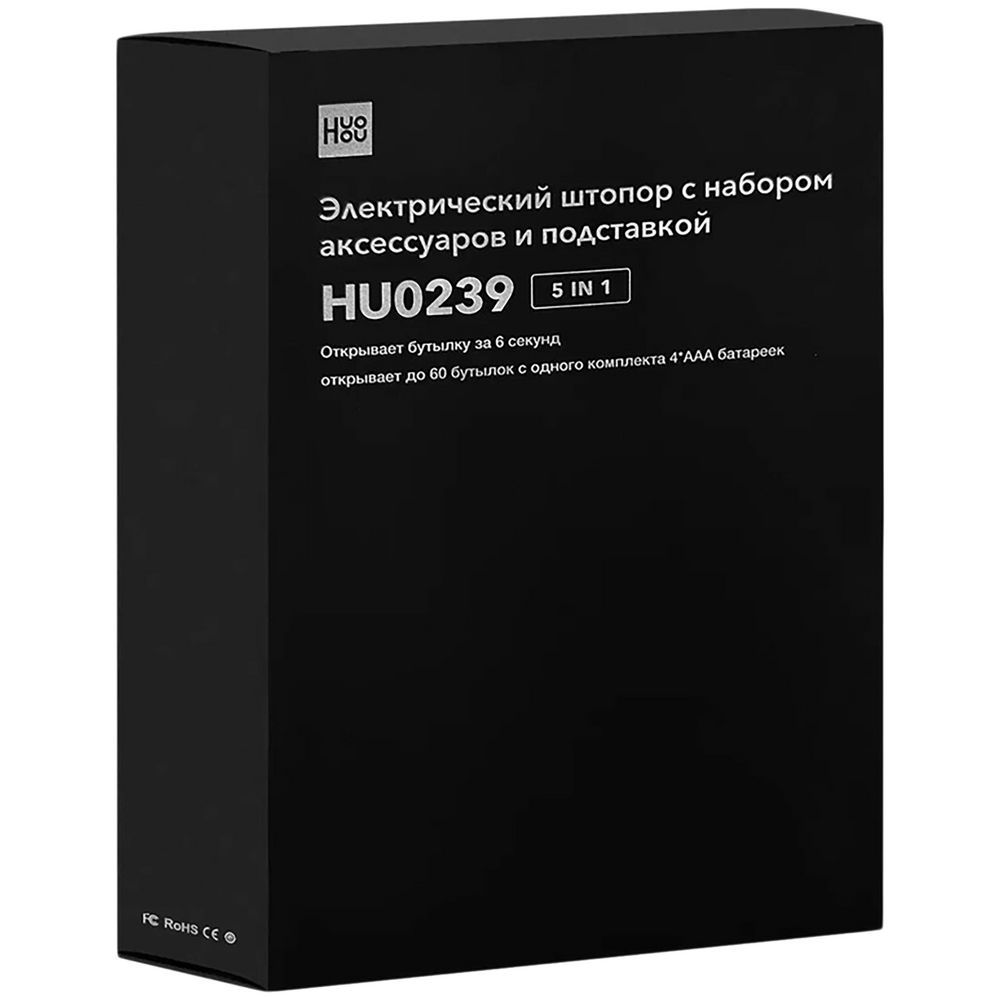 - Электрический штопор HuoHou с набором аксессуаров и подставкой — незаменимый помощник для ценителей вина. Устройство позволяет всего за несколько секунд справиться с пробкой любой прочности и с легкостью открыть бутылку.