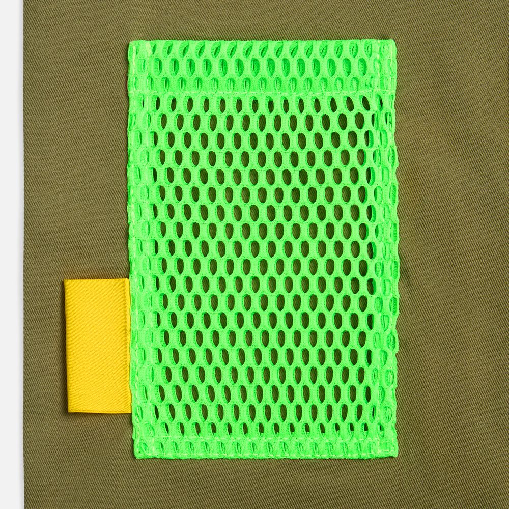 - Крупная тканевая сетка Rete — это вызов стандартам. Она сразу заявляет о себе — просвечивающая и смелая. Такой материал невозможно не заметить: он придает изделию объем, брутальность и футуристичную эстетику.
