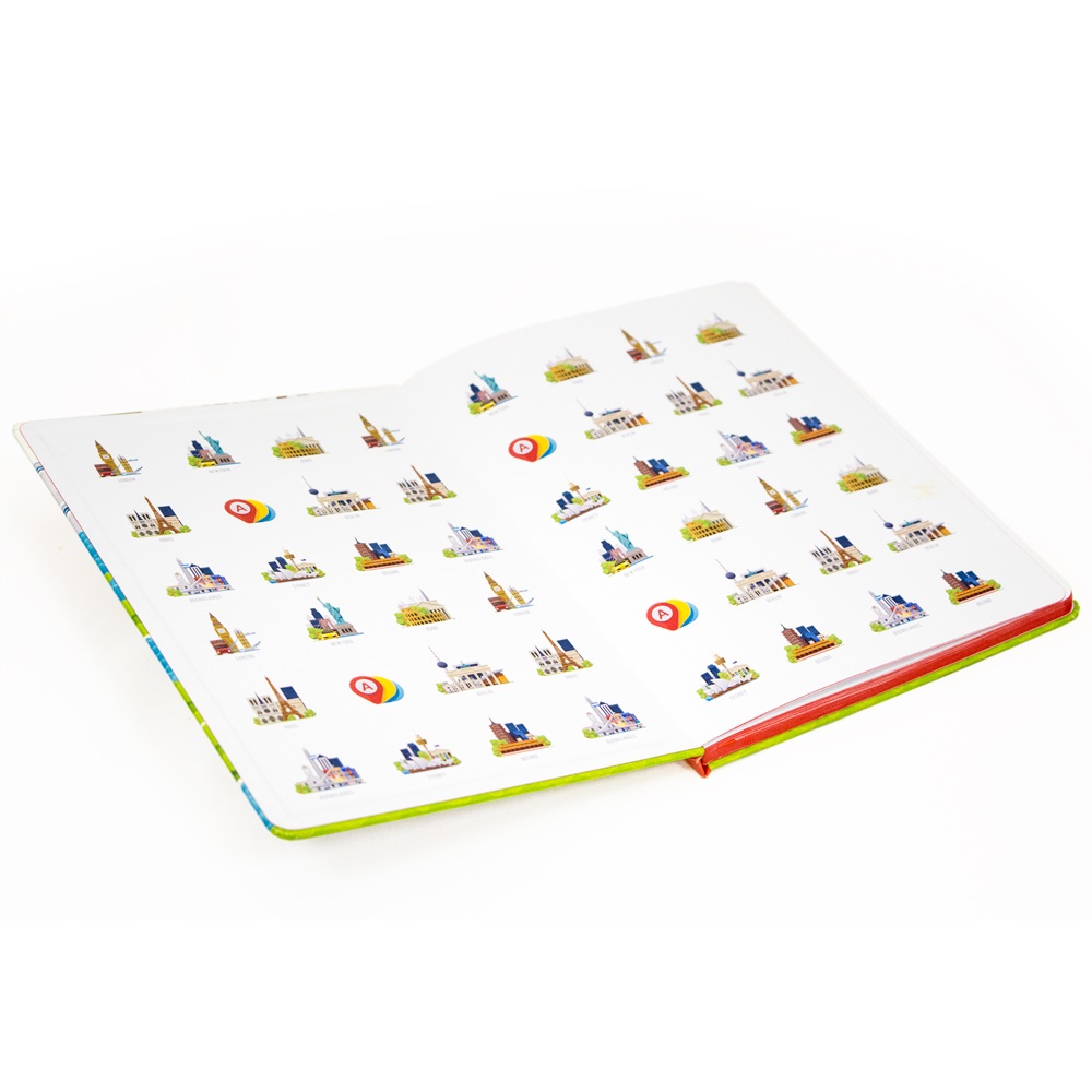 - Много путешествуете? Тогда вам точно не обойтись без оригинального компаньона-блокнота, в котором можно все тщательно распланировать и записать. Оригинальный принт обложки с достопримечательностями городов мира увлечет вас в мысли о грядущем путешествии. Здесь можно сделать интересные путевые заметки, записать необходимую информацию и актуальные разговорные фразы! Желаем вам удачного путешествия!