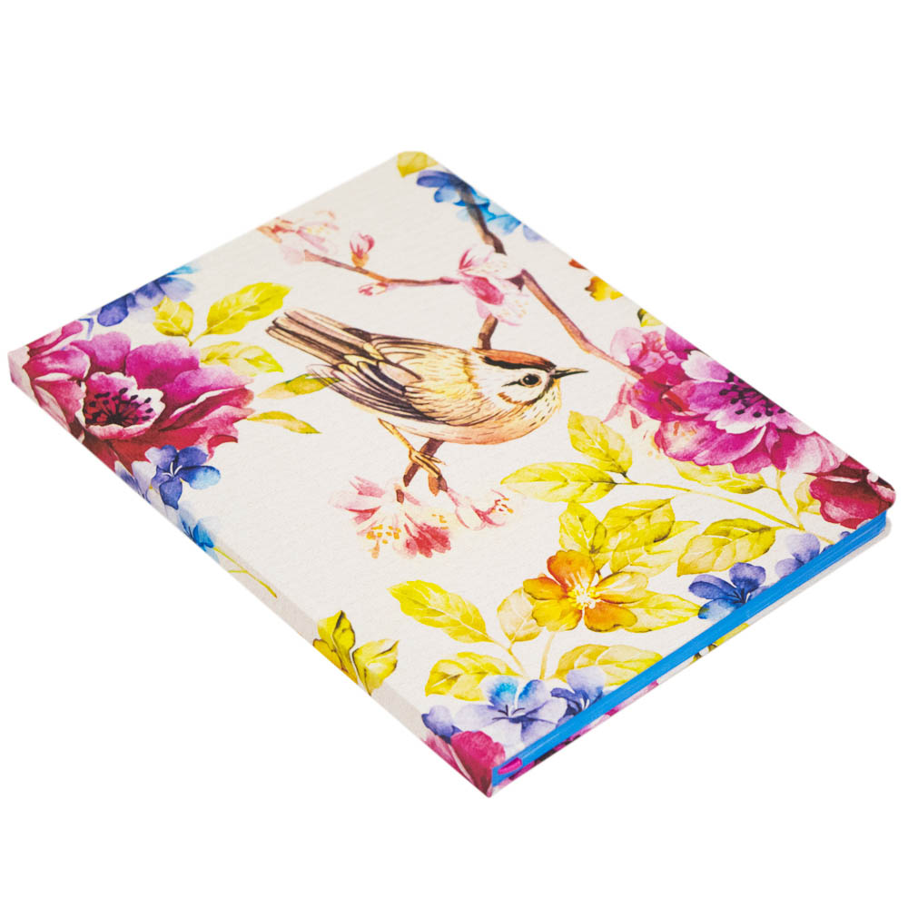 - Во время серых скучных дней этот блокнот перенесет ваши мысли в цветущую ароматную весну. Яркие бутоны, цветы, птицы, - невозможно оторвать взгляд от колоритной и в то же время чрезвычайно нежной обложки. Небесно-голубой окрас обреза подчеркивает стилистику. Такую стильную вещь не хочется выпускать из рук. Здесь хочется записать самые сокровенные мысли и мечты.