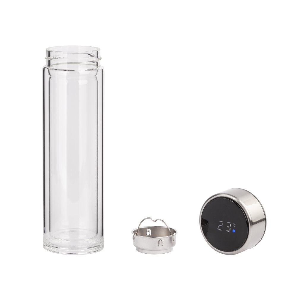 Заварочный термос "Остин" на 320 мл с двойной колбой из боросиликатного стекла - современный аксессуар, который удобно взять с собой на прогулку, в поездку или отдых. Неопреновая сумка-чехол не только защищает колбу, но и улучшает её температурные характеристики. Пользователям понравится герметичная крышка с дисплеем для контроля температуры содержимого. Чай или кофе удобно заваривать прямо в термосе, в жаркую погоду можно использовать его под освежающий коктейль или цитрусовую воду. В комплекте есть съемное сито из 304 стали для фильтрации содержимого.