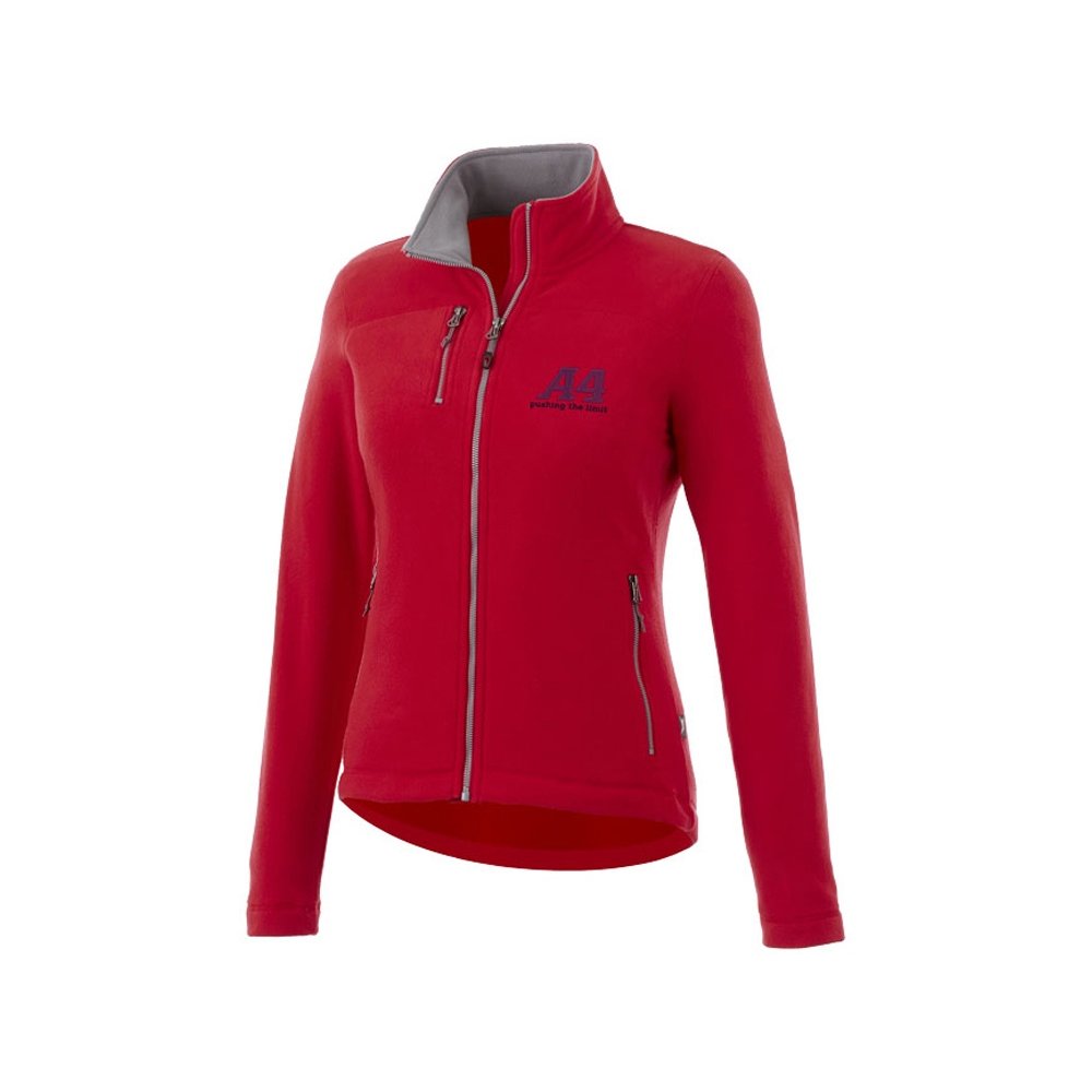 - Женская микрофлисовая куртка Pitch. Карманы для рук на молнии. Нагрудный карман на молнии. Внутренняя сторона воротника в контрастном цвете. Внутренний выход для медиапроводов. Обратная контрастная молния спереди. Молния легкого скольжения. Двухцветная лента по линии окантовки горловины. Тканая -флажок сбоку. 100% полиэстер микро флис. 200 г/м².