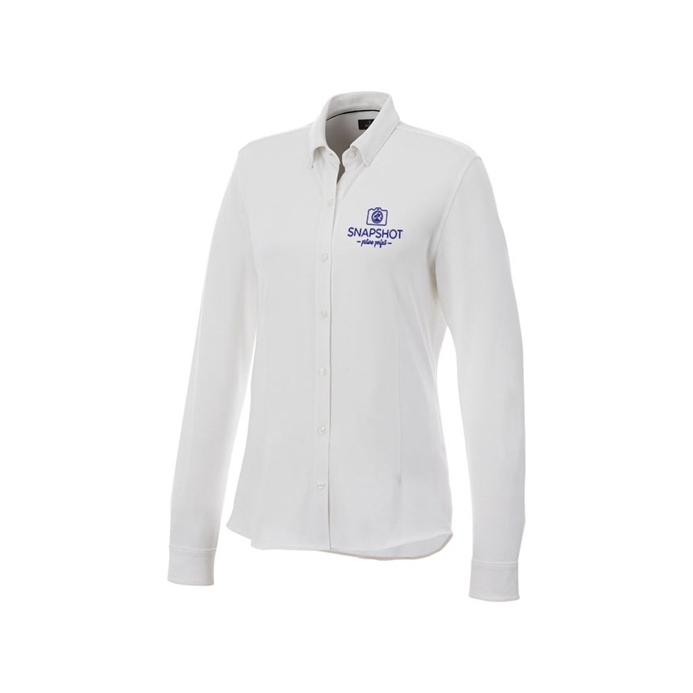 - Женская рубашка Bigelow из пике с длинным рукавом. Воротник из ткани изделия. Стрейтч-ткань. Регулируемый манжет на одной пуговице. Воротник на пуговицах. Швы моделирующие фигуру и приталенный крой. Атласная окантовка внутренней части горловины. Гравированные пуговицы в цвет изделия. Тканая метка. Двойное трикотажное пике, 95% хлопок и 5% эластан. 200 г/м².