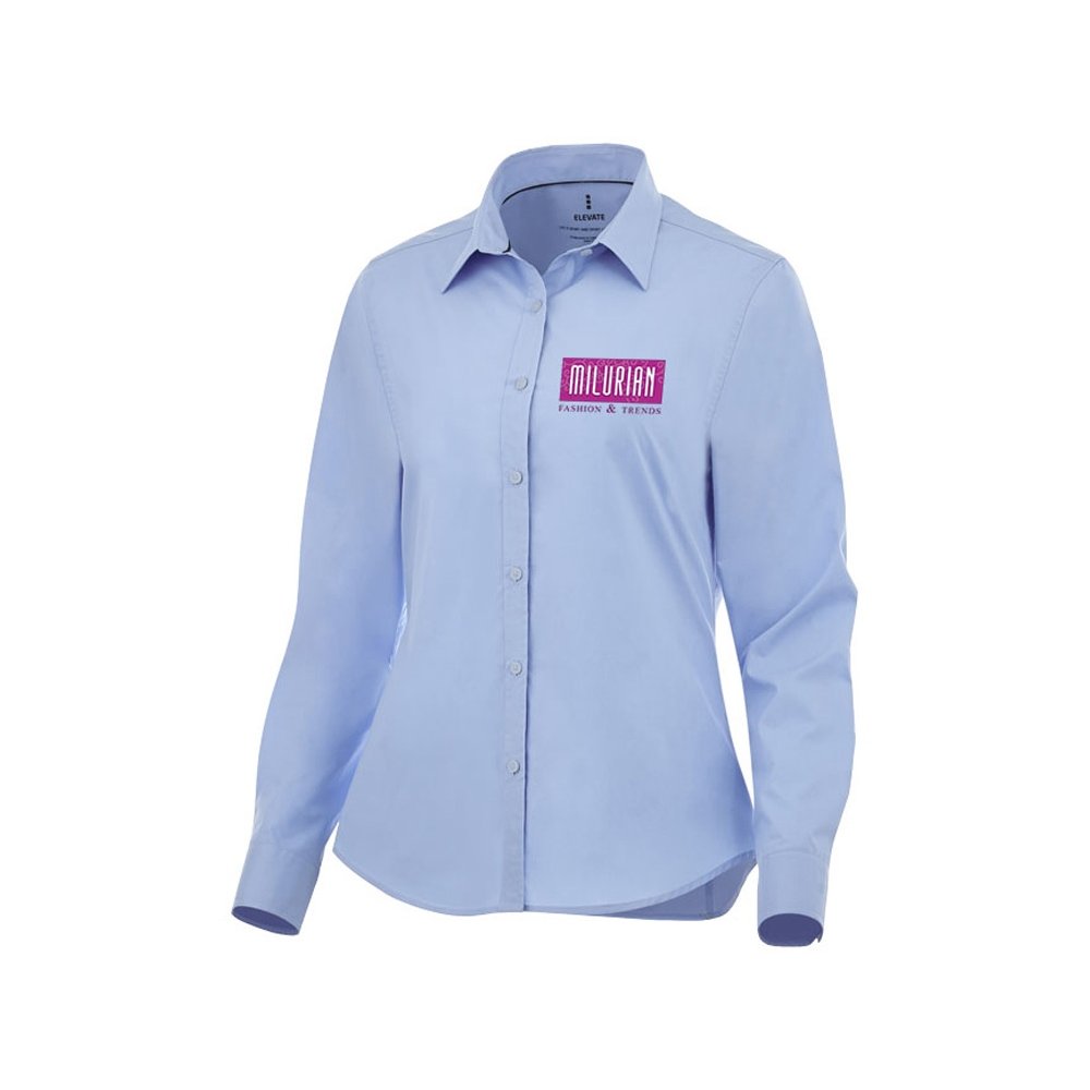 - Женская рубашка с длинными рукавами Hamell. манжет на одной пуговице. Атласная окантовка внутренней части горловины. Швы моделирующие фигуру и приталенный крой. Гравированные пуговицы в цвет изделия. Комфортный ярлык-трансфер на изделии. Поплин из 96% хлопка и 4% эластана. 118 г/м².