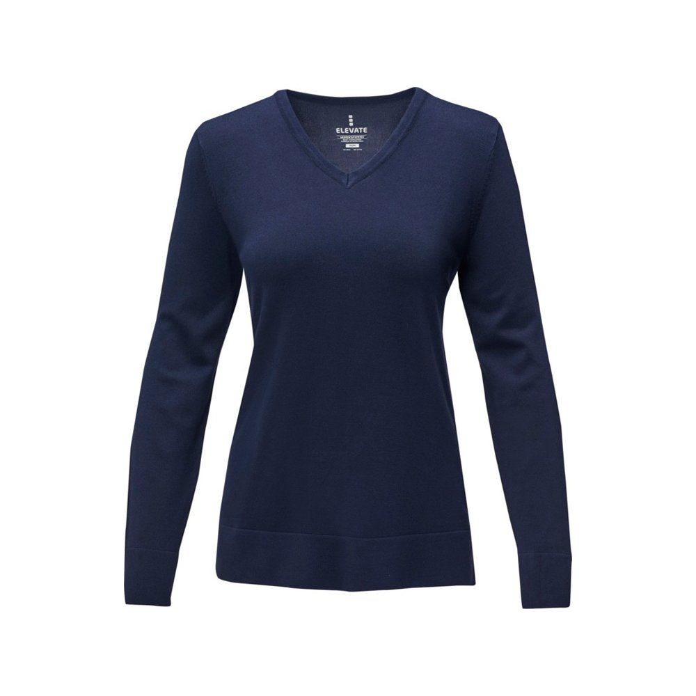 - Женский пуловер Stanton. V-образный вырез. Воротник из гладкого трикотажа. С манжетами из гладкого трикотажа в рубчик. С подшивкой из гладкого трикотажа в рубчик. Удлиненный задний подол с боковыми прорезями. Атласная лента на воротнике Основная этикетка нанесена на ткань методом термоприклеивания без неудобных пришитых ярлыков. Придающие форму швы и зауженная талия для ровного прилегания.