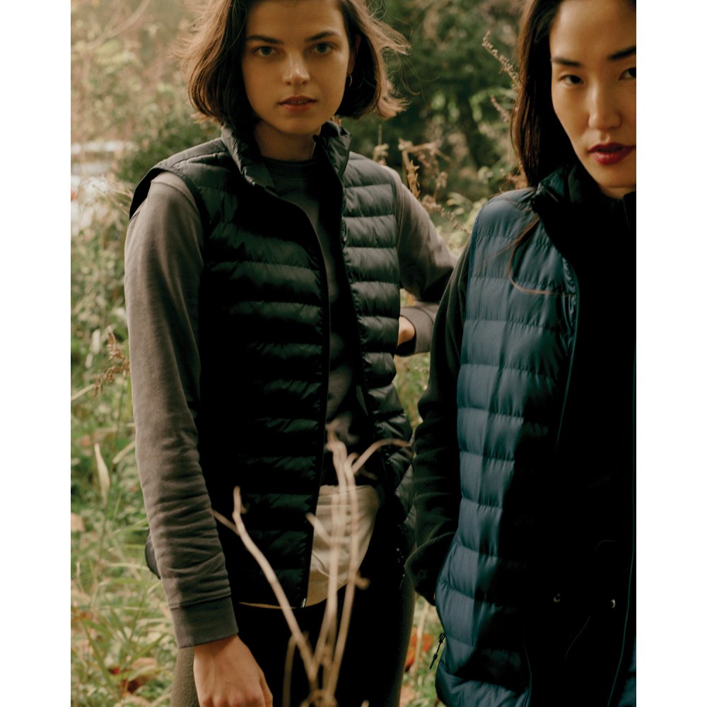 - Стеганый жилет Meru согреет даже в самые холодные дни. Это экологичное решение: безрукавка на 100% изготовлена из переработанного полиэстера — в том числе, из него сделан и утеплитель. Жилет и карманы застегиваются на молнии со скрытой спиралью: это делает застежку водонепроницаемой. Пуллеры (собачки) молнии окрашены в тон жилету. Его можно носить как под основной курткой, так и в качестве верхней одежды осенью или весной. Ткань, из которой он изготовлен, успешно защищает от влаги благодаря водо