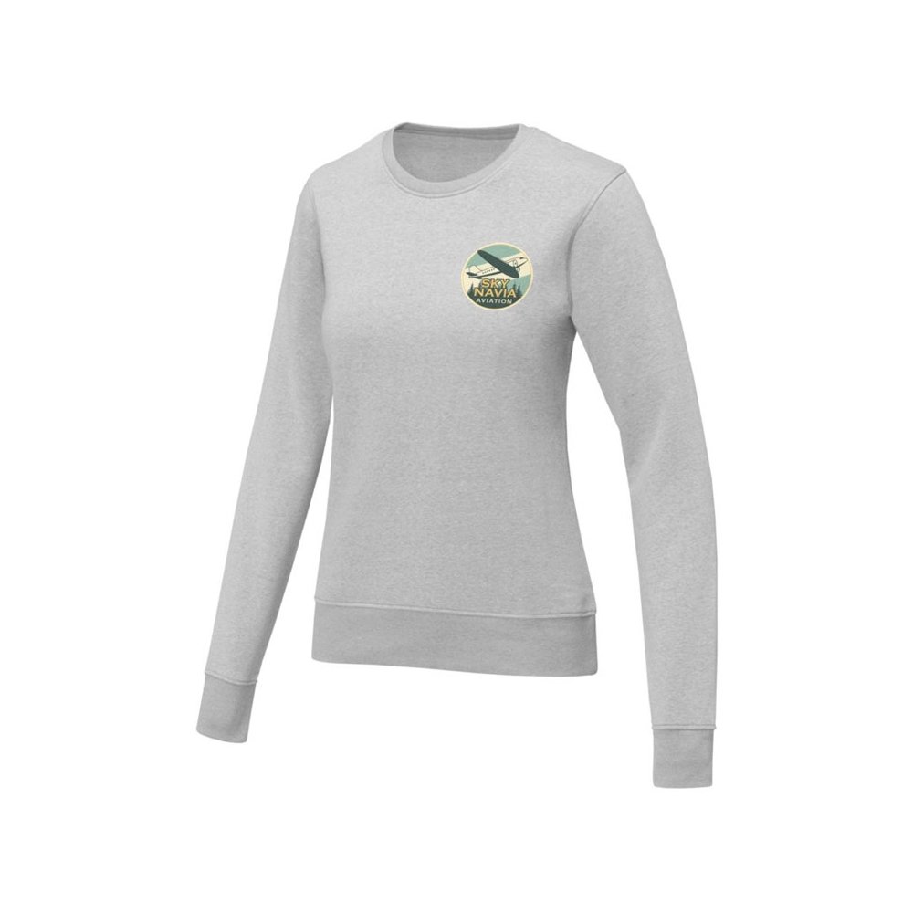 - Женский свитер Zenon с круглым вырезом. Основная этикетка, которую можно оторвать или отрезать, без неудобных пришитых ярлыков. Круглый вырез. Воротник из гладкого трикотажа. С манжетами из гладкого трикотажа в рубчик. С подшивкой из гладкого трикотажа в рубчик. Внутренняя сторона покрыта ворсом. Самоклеящаяся лента на воротнике. Придающие форму швы и зауженная талия для ровного прилегания. Трикотаж 50% Хлопок, 50% Полиэстер, 240 g/m2.