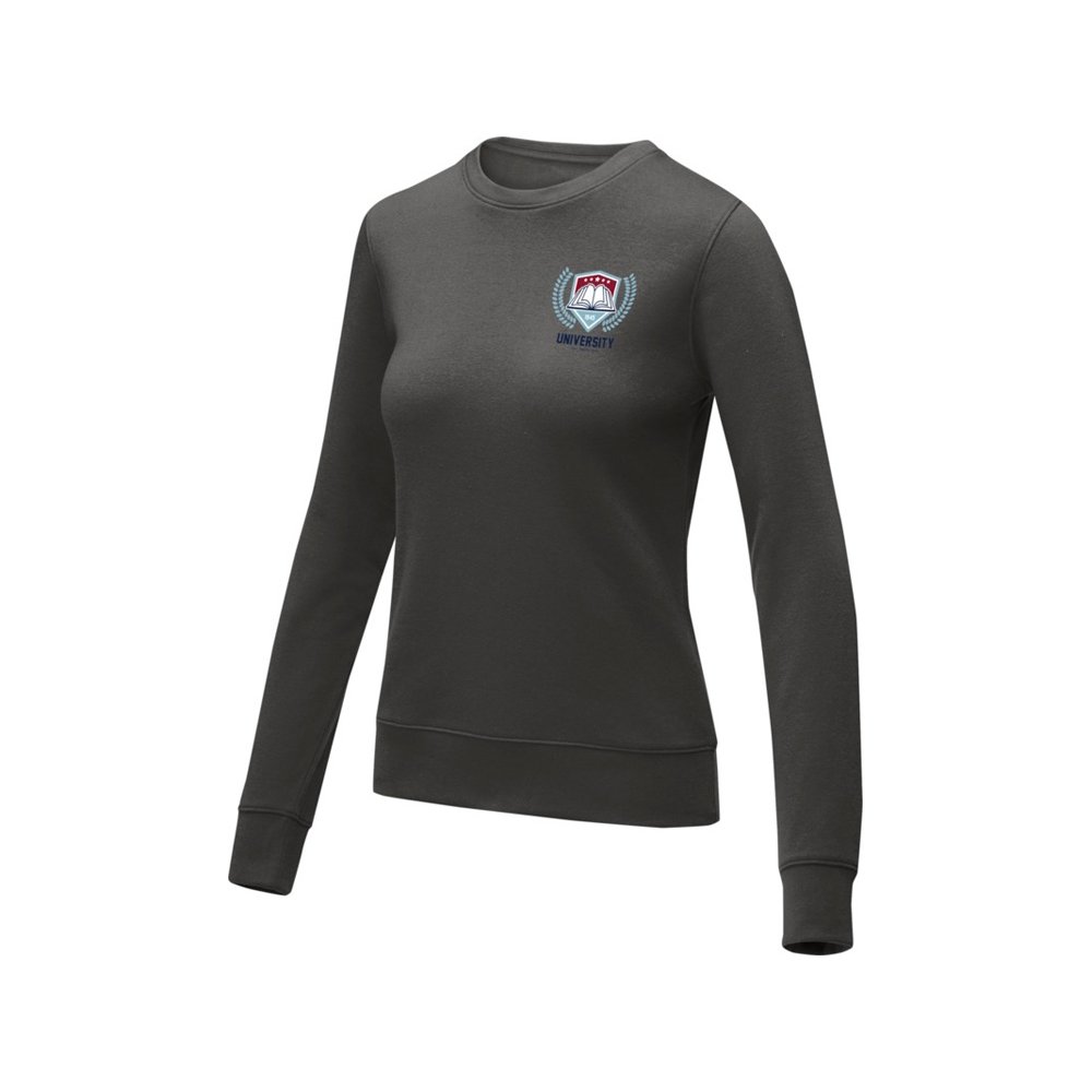 - Женский свитер Zenon с круглым вырезом. Основная этикетка, которую можно оторвать или отрезать, без неудобных пришитых ярлыков. Круглый вырез. Воротник из гладкого трикотажа. С манжетами из гладкого трикотажа в рубчик. С подшивкой из гладкого трикотажа в рубчик. Внутренняя сторона покрыта ворсом. Самоклеящаяся лента на воротнике. Придающие форму швы и зауженная талия для ровного прилегания. Трикотаж 50% Хлопок, 50% Полиэстер, 240 g/m2.