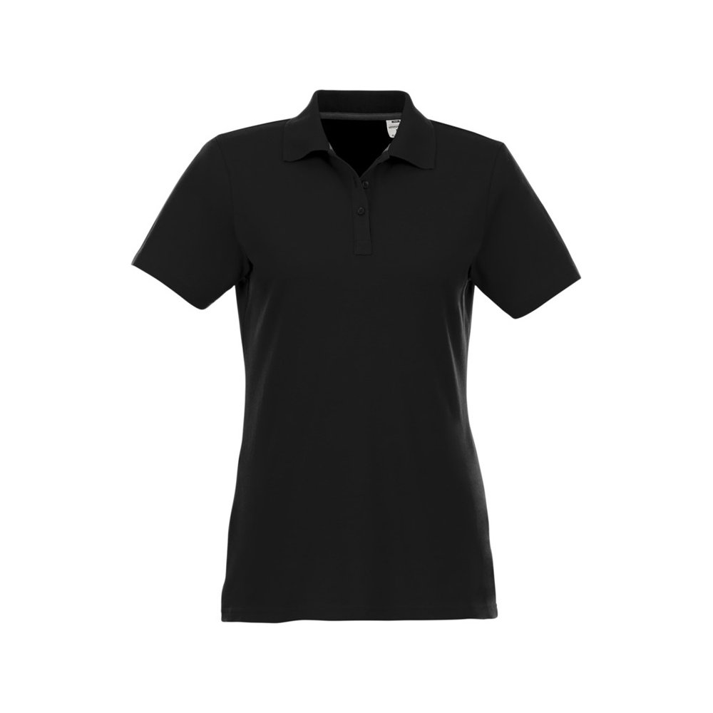- Женское поло Helios с коротким рукавом. Женская модель с разрезами по бокам. Отрезной-отрывной ярлык для комфорта. Воротник гладкой вязкой в рубчик. Планка с тремя пуговицами. Двойная строчка на воротнике и внизу изделия. Пуговицы в цвет изделия. Полоска на горловине в контрастном цвете. Трикотаж Piqué, 100 % хлопок. 180 г/м².