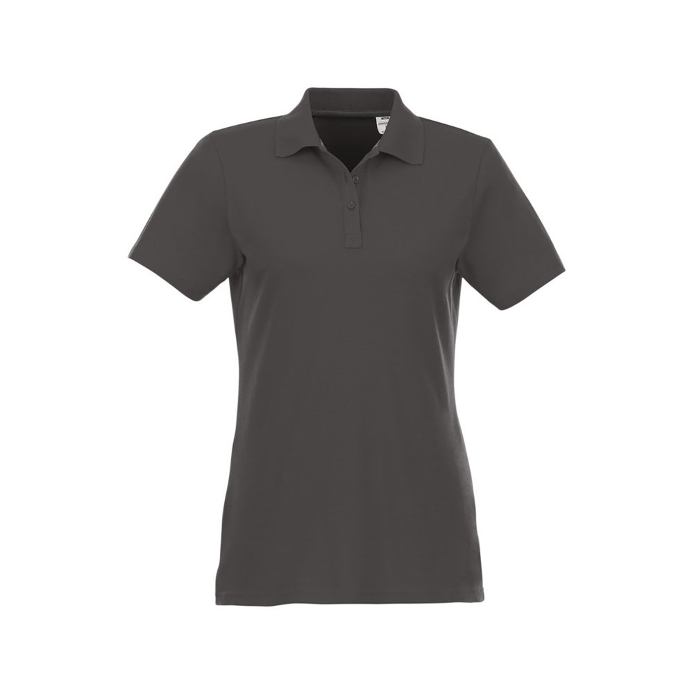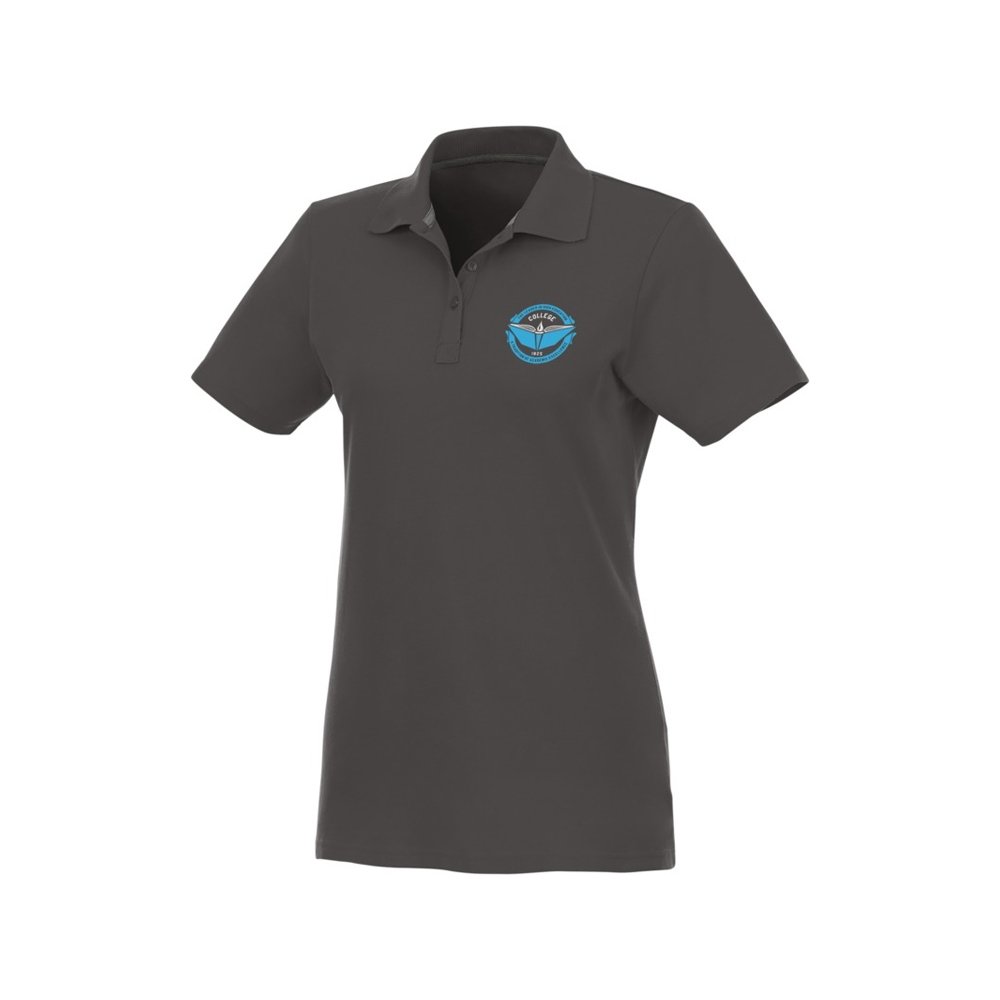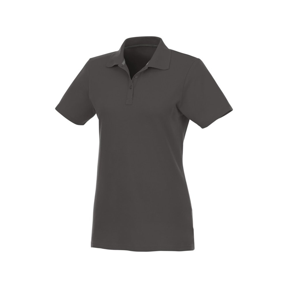 - Женское поло Helios с коротким рукавом. Женская модель с разрезами по бокам. Отрезной-отрывной ярлык для комфорта. Воротник гладкой вязкой в рубчик. Планка с тремя пуговицами. Двойная строчка на воротнике и внизу изделия. Пуговицы в цвет изделия. Полоска на горловине в контрастном цвете. Трикотаж Piqué, 100 % хлопок. 180 г/м².