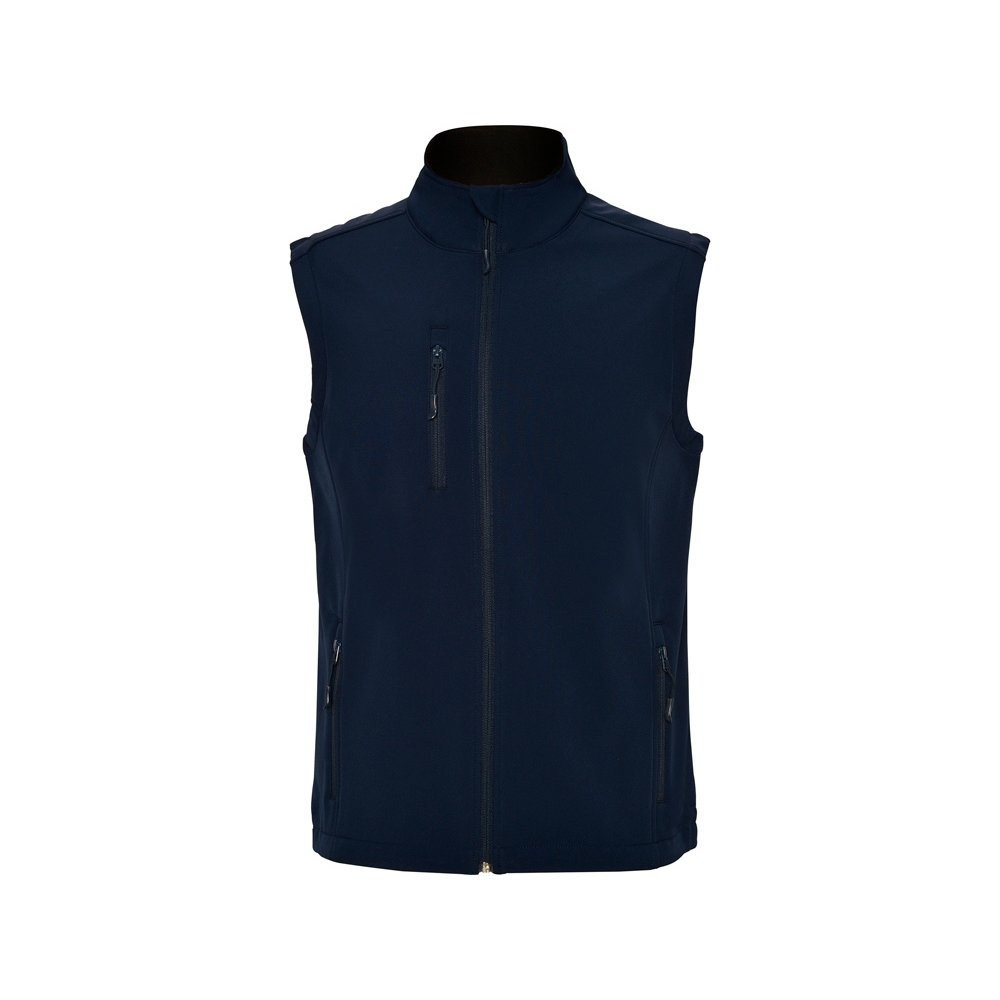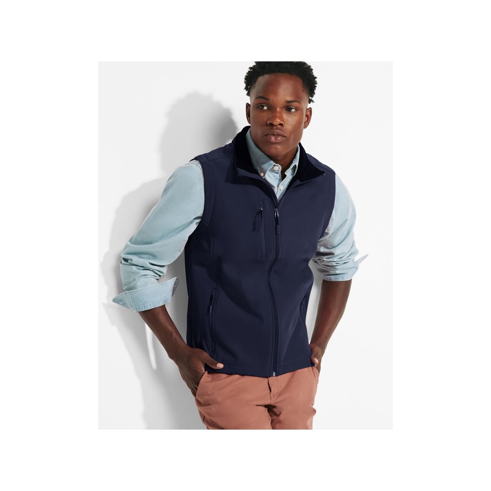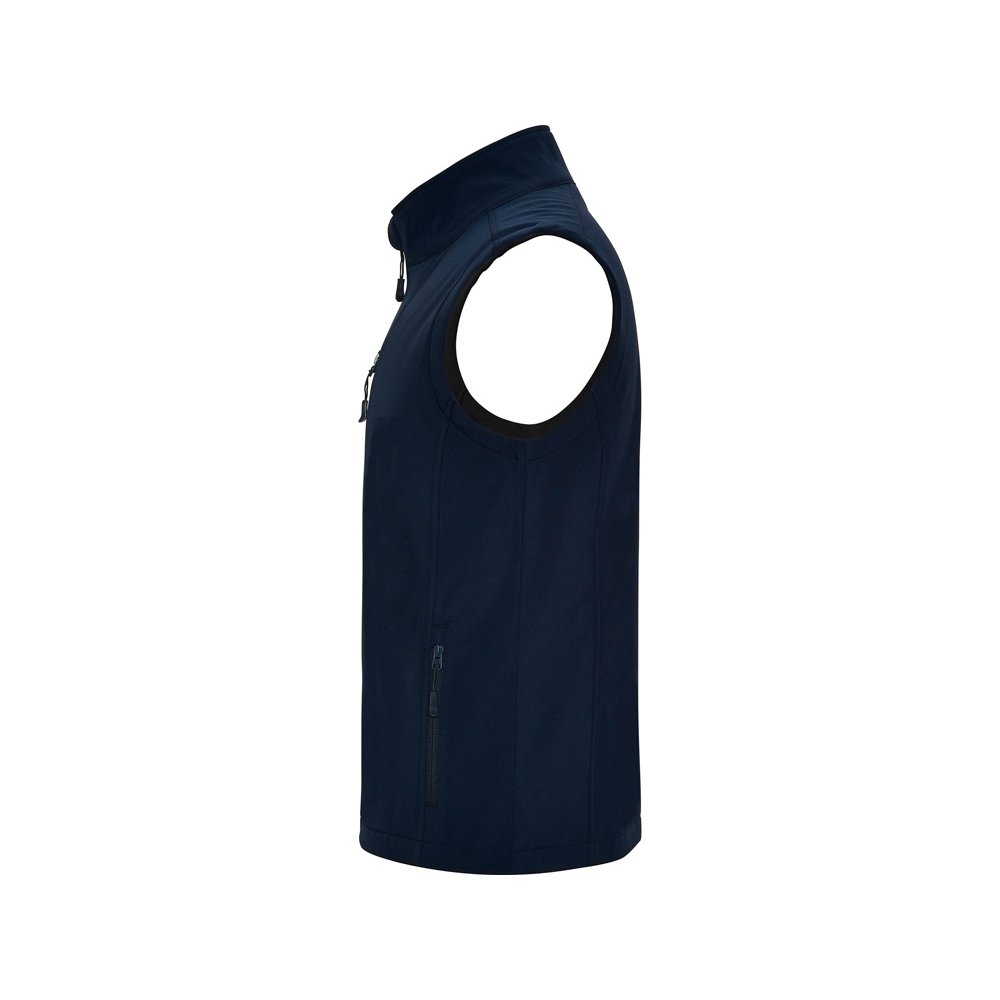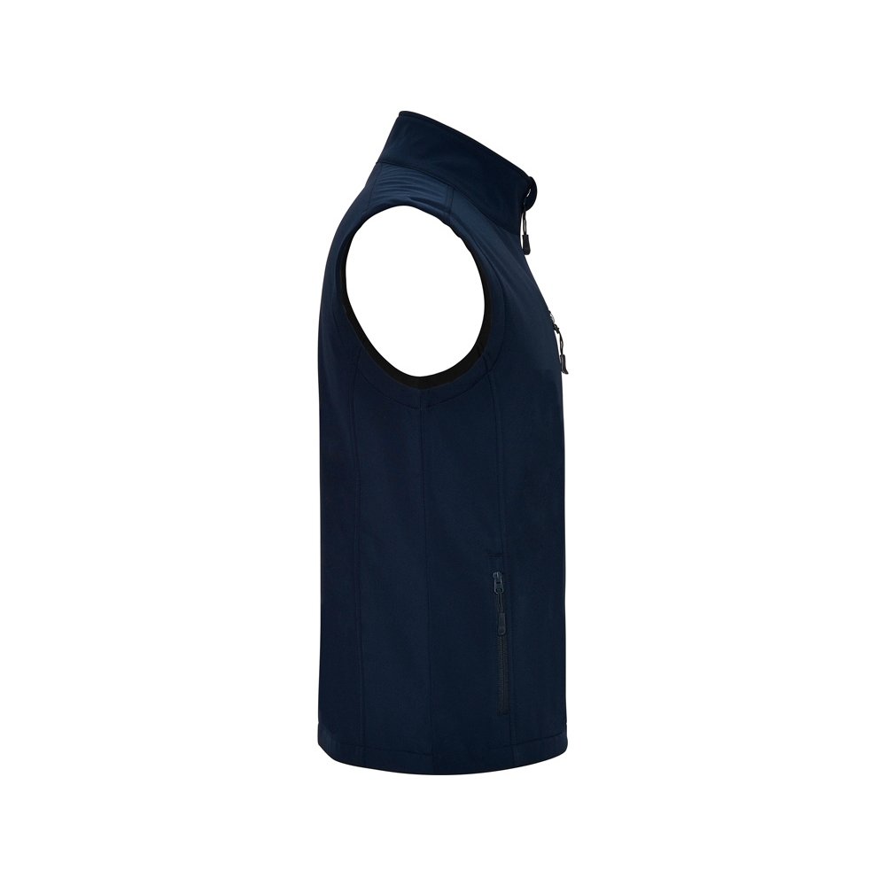 - Двухслойный жилет софтшелл. - Центральная молния в тон с защитой для подбородка. - Нагрудный карман с правой стороны с молнией в тон. - Два внешних кармана на молнии в тон. - Низ с эластичным шнуром и фиксаторами.