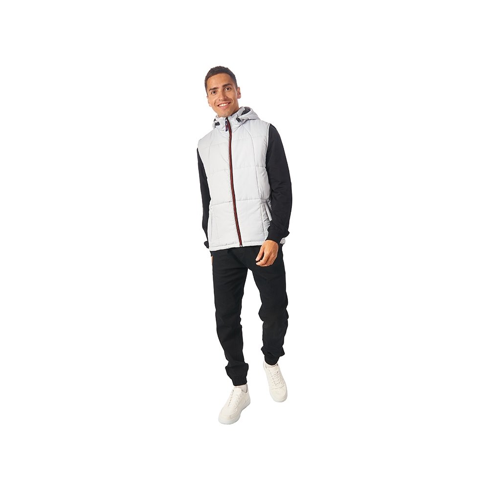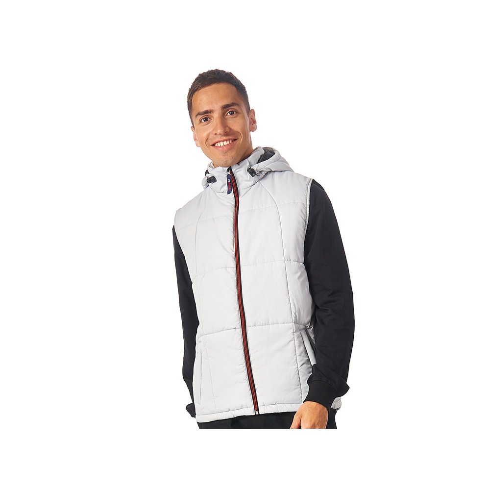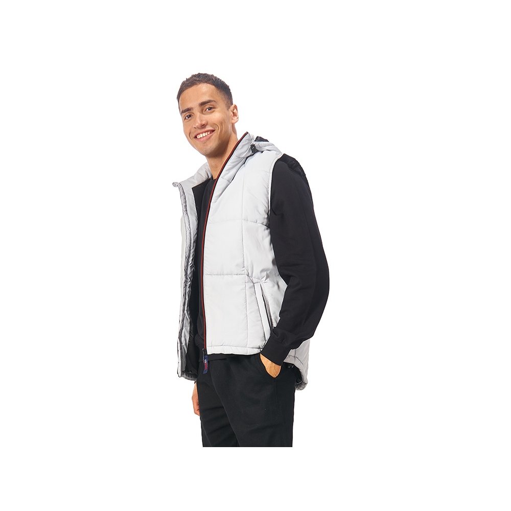 - Утепленный жилет для мужчин *центральная молния контрастного цвета *два боковых кармана застегиваются на молнию *большой внутренний карман для документов или денег *контрастная внутренняя подкладка *эластичная кулиска с фиксаторами по низу изделия *задняя часть жилета длиннее передней *съемный капюшон *утеплитель 260гр и в капюшоне 200гр