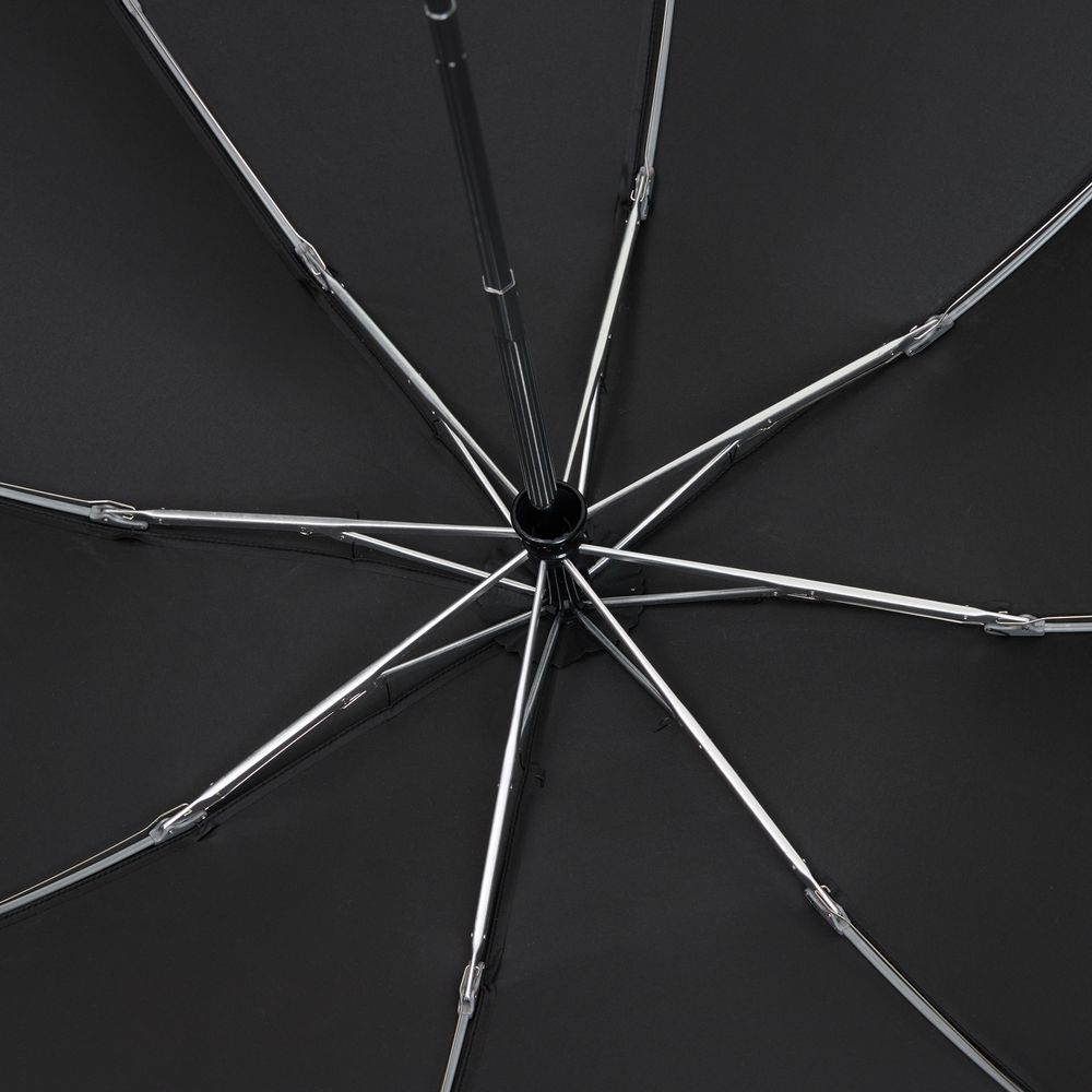 Складываясь после дождя, он прячет мокрую поверхность внутри, а сухая остается снаружи: в закрытом положении зонт не побеспокоит окружающих и не намочит одежду. Благодаря застежке на ремешке зонт удобно подвесить, например, на рюкзак.- Зонт-автомат, 3 сложения, 8 спиц