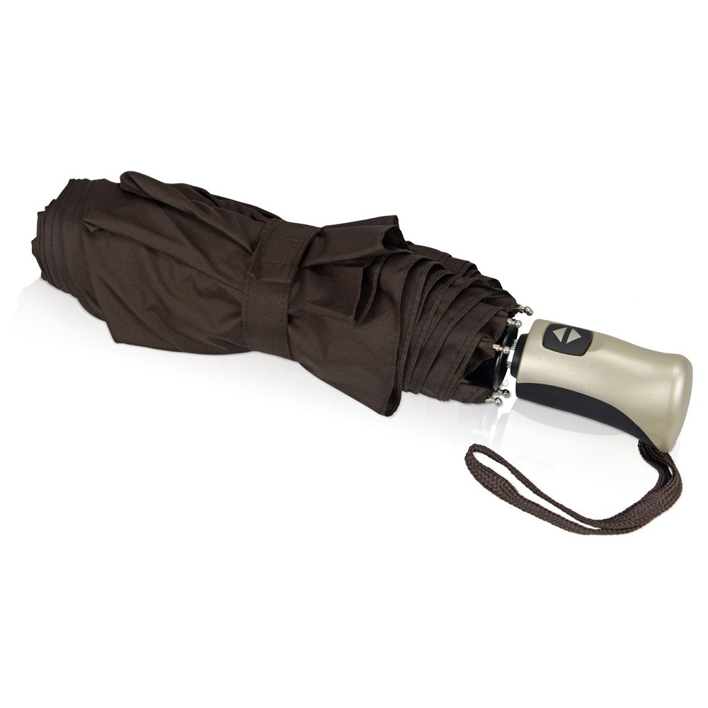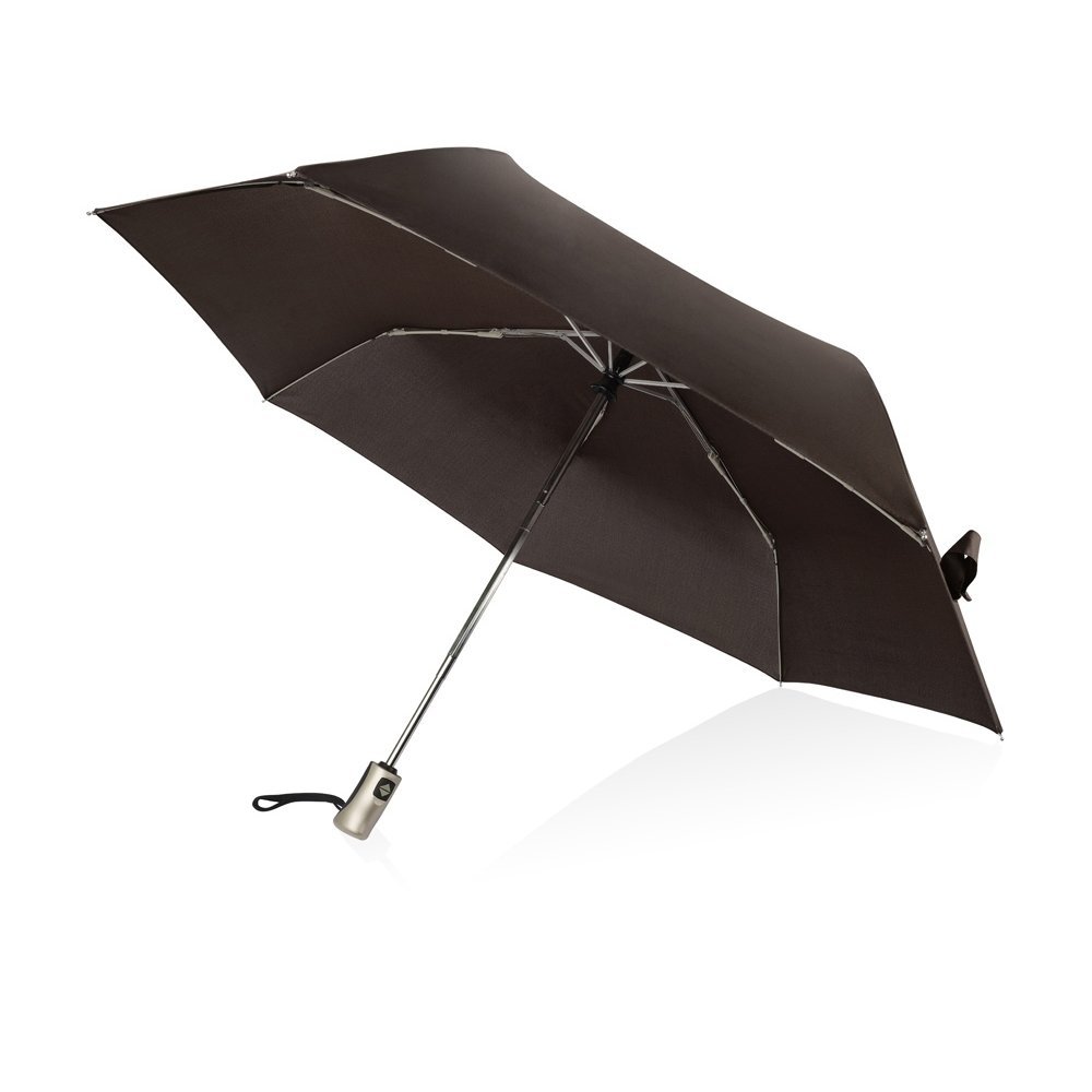 - Зонт «Оупен» – прекрасный сувенир для нанесения логотипа. Он складывается в 3 сложения и не занимает много места. Надежный автоматический механизм позволит быстро раскрыть и закрыть зонт, чтобы защитить вас от непогоды.