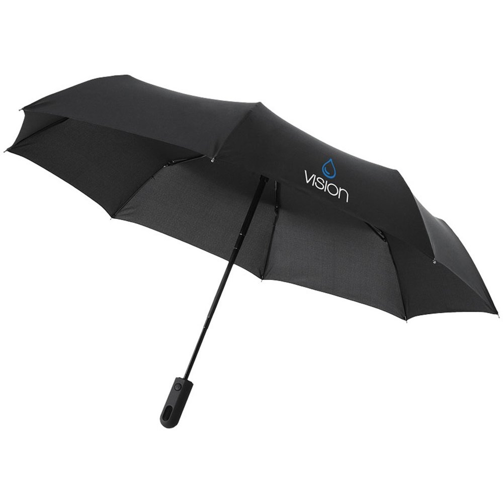 - Эксклюзивный автоматически открывающийся и закрывающийся зонт в три сложения. Черная металлическая трость, стекловолоконные спицы и пластиковая прорезиненная ручка. Предлагается в чехле под цвет зонта. Длина зонта в сложенном виде: 31 см. Эпонж полиэстер.