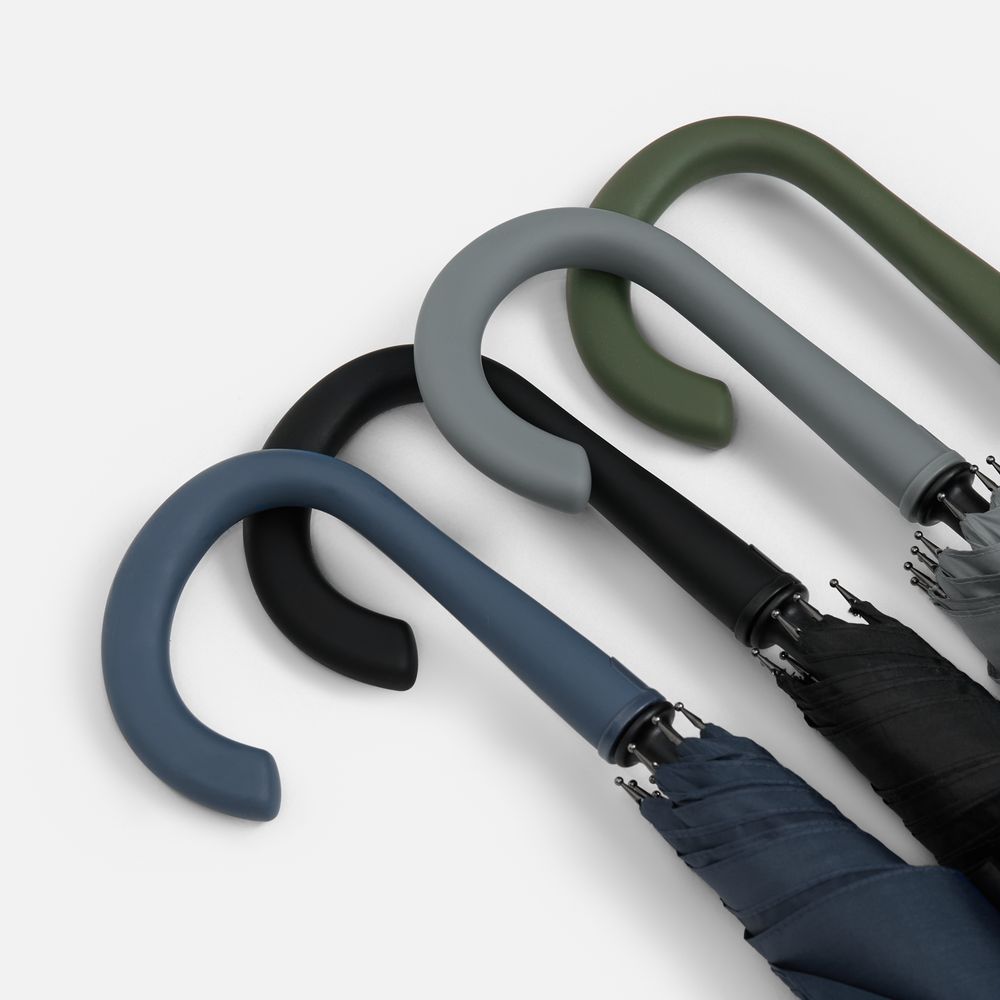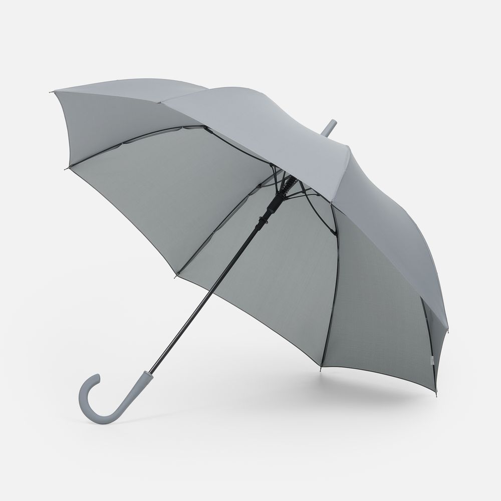 - Современная модель зонта-трости с эргономичной ручкой, каркасом из стеклопластика и увеличенным размером купола.