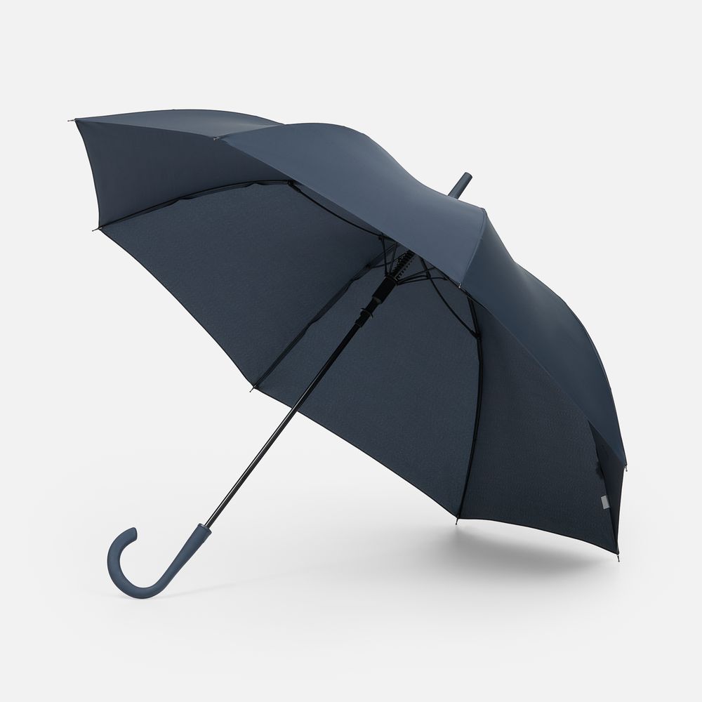 - Современная модель зонта-трости с эргономичной ручкой, каркасом из стеклопластика и увеличенным размером купола.