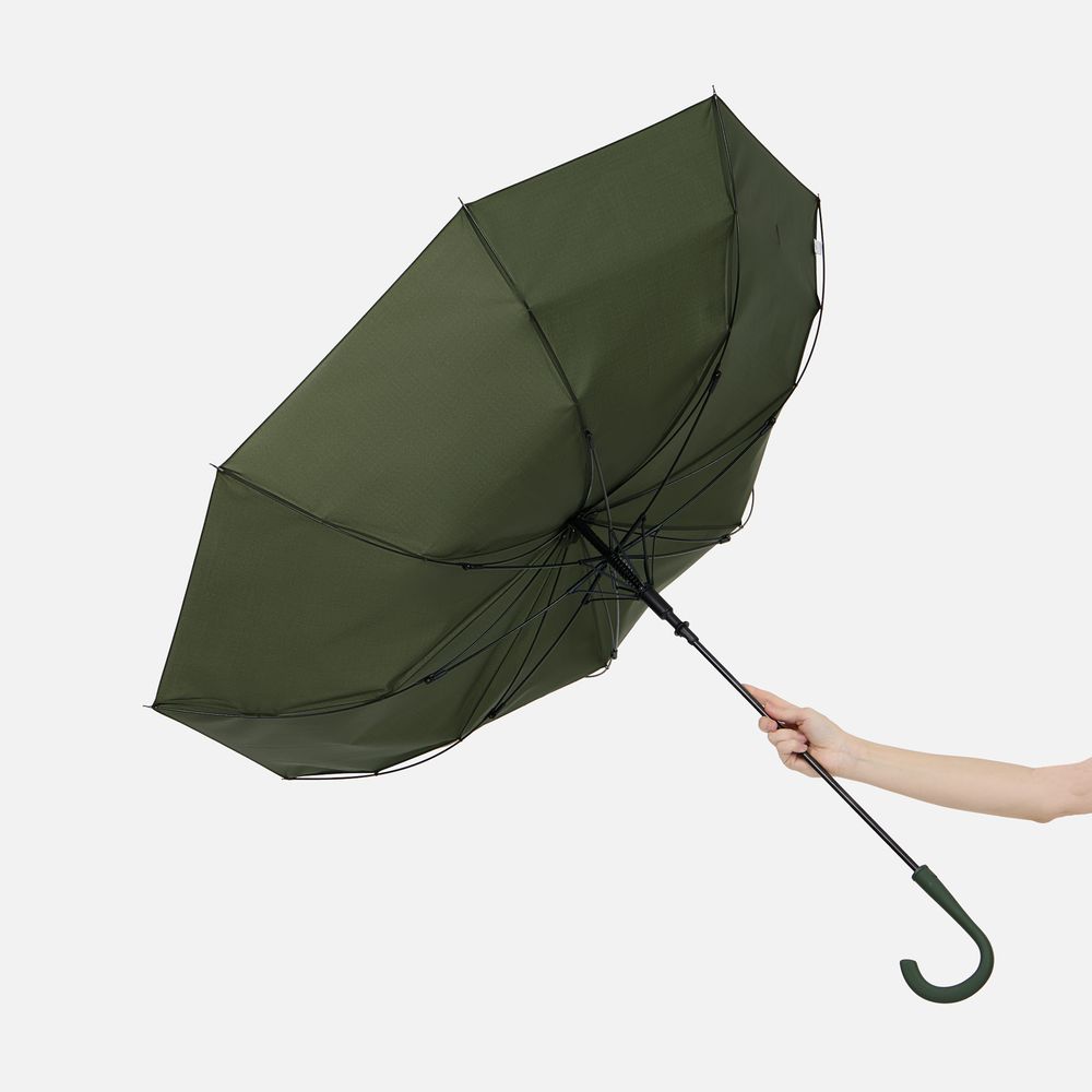 - Современная модель зонта-трости с эргономичной ручкой, каркасом из стеклопластика и увеличенным размером купола.