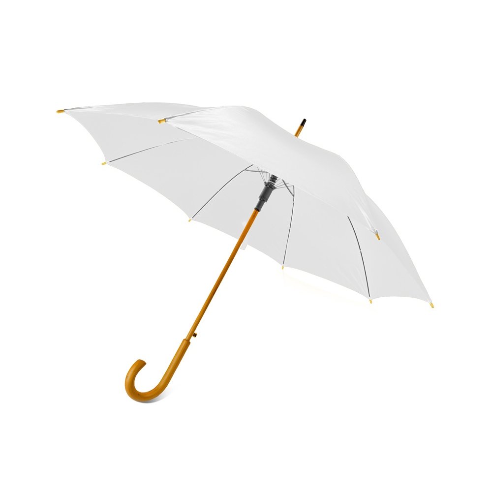 Полуавтоматический зонт-трость с деревянной ручкой выполнен из качественных материалов и устойчив к сильным порывам ветра. Яркие, сочные цвета в ассортименте.